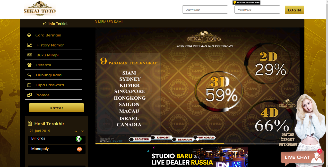 Domino4d menyediakan 12 pasaran togel terbaik dan 19 live game casino IDN PLAY