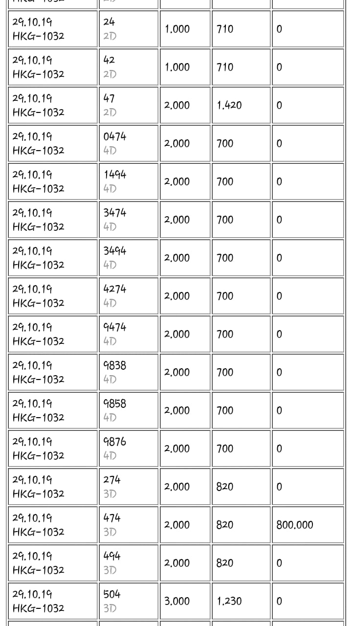 • Hongkong (HK) (JAM TUTUP 22:45 RESULT 23:00 )