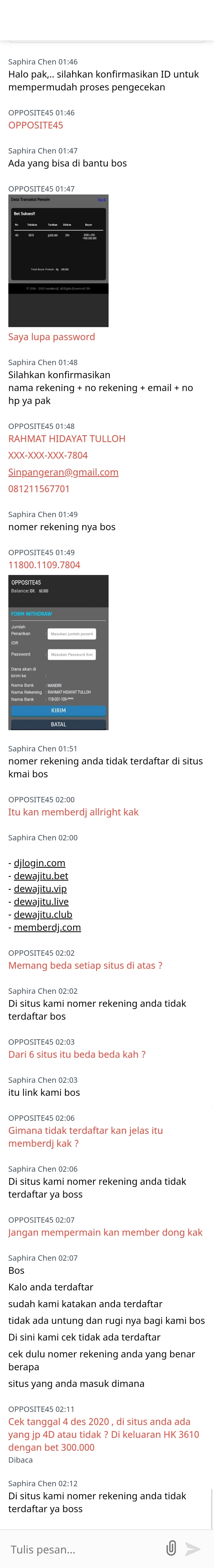 4. Saya merasa di permain kan oleh salah satu admin togel , dia mengaku sudah mentransfer dana kemenangan saya ke rek pribadi saya namun zonk tidak bertambah saldo rekening saya , mohon di tindak lanjuti ?