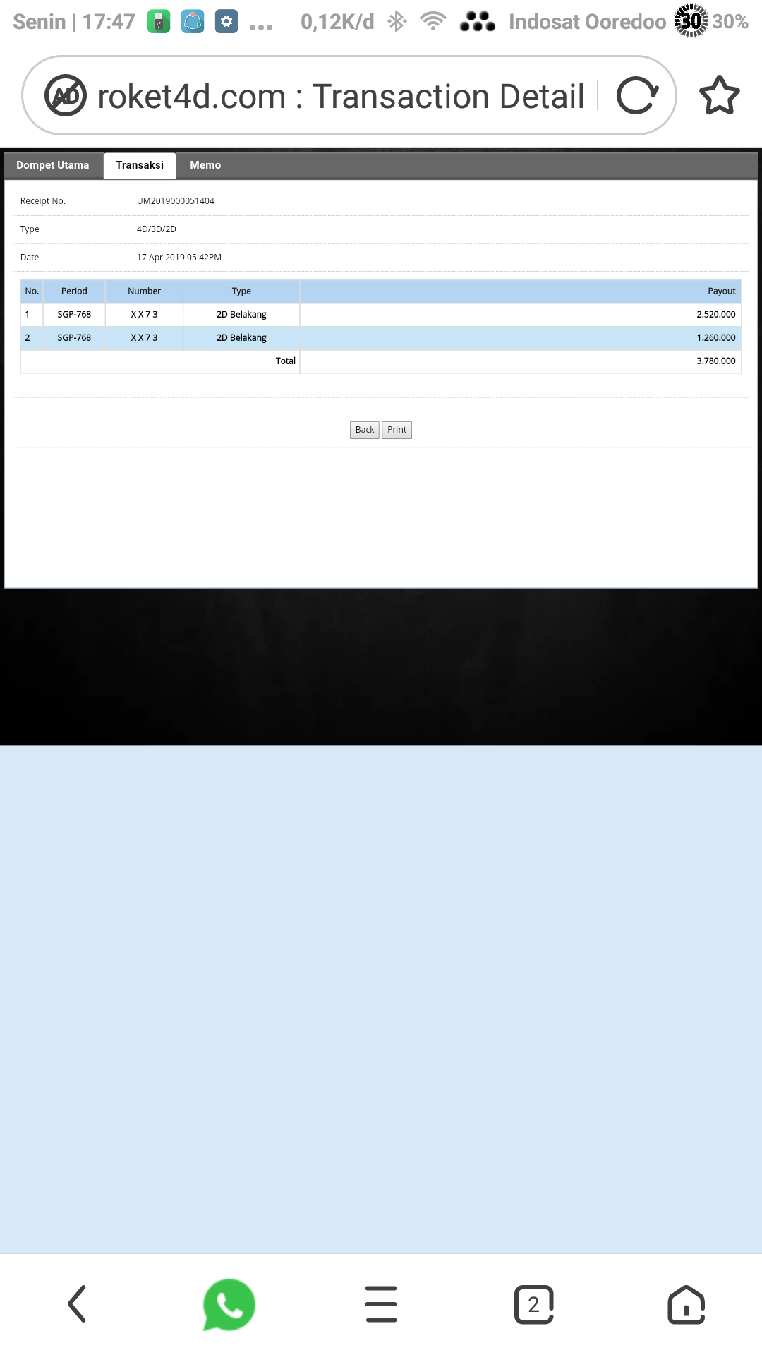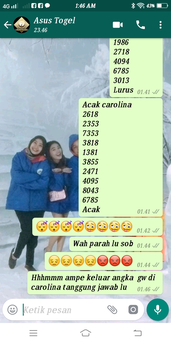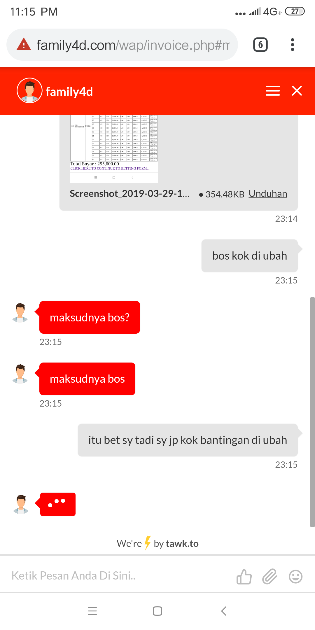 44. Om richard saya mau mgeluh ini sma admin Asus salah satu bo recomended om richard yg banner jg ada disini.. Adminnya parah klo depo malam sering lama.. Terparah malam ini saya depo mau bwtting carolina day.. Depo jam 01:30 gak di proses sampai pasaran carolina day tutup jam 01:45.. Angka yg mau aku pasang keluar lg walaupun cm 3d tp sangat mengecewakan.. Ini saya lampirkan bukti saya chat wa admin angka yg mau pasang sebelum result tp gak bs beting krn depo saya gak di proses di karenakan adminnya gak tau kemana chat di aplikasi gak dibuka chat wa juga bahkan sampai call wa gak dijawab.. Rugi 400rb harusnya saya jp minimal 3d x 1000 bwrikut aku lampirin