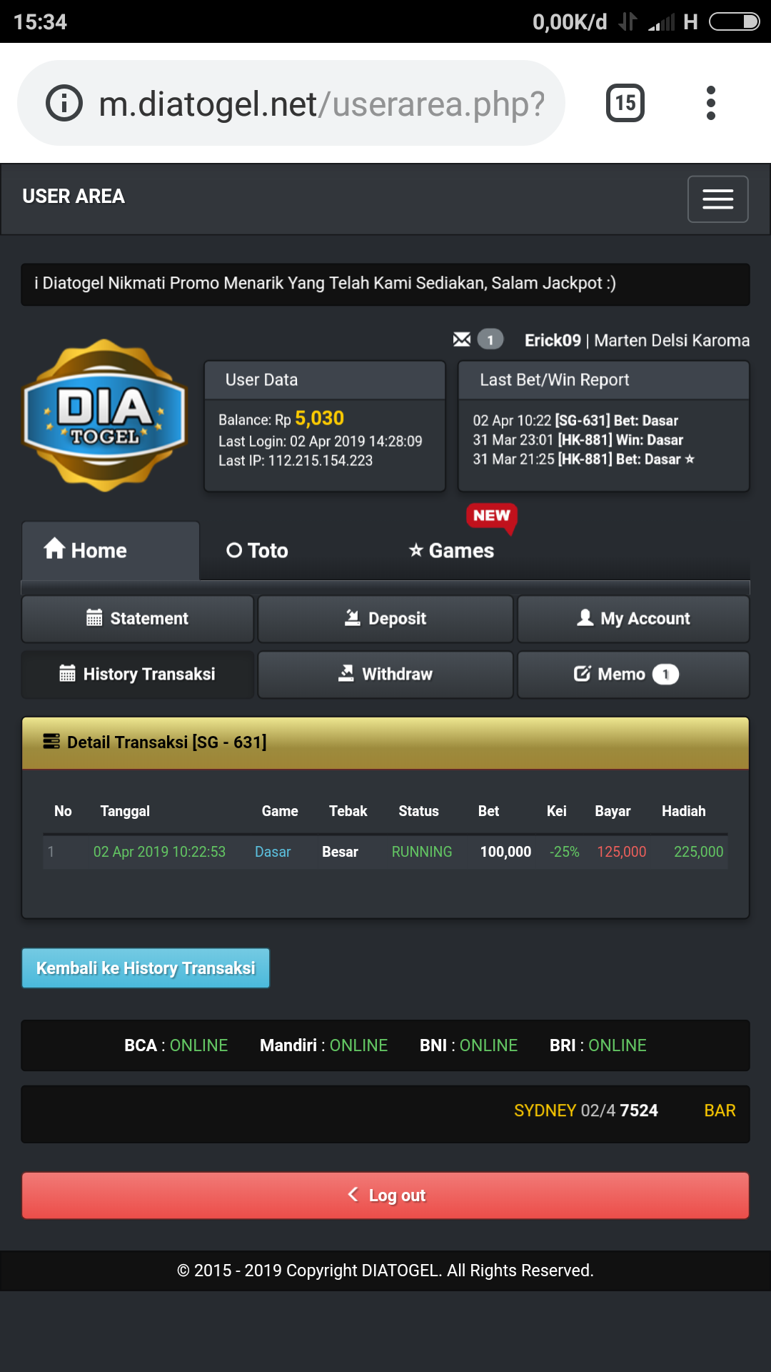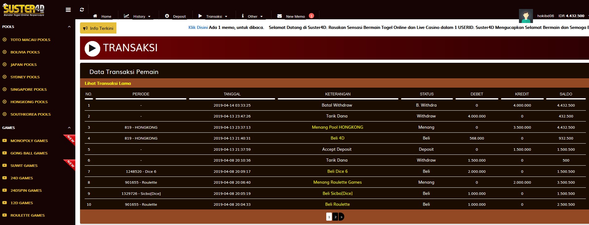 teman2 berhati2 lah bermain di BO Hitogel .perhatikan pasangan / betingan anda baik2.