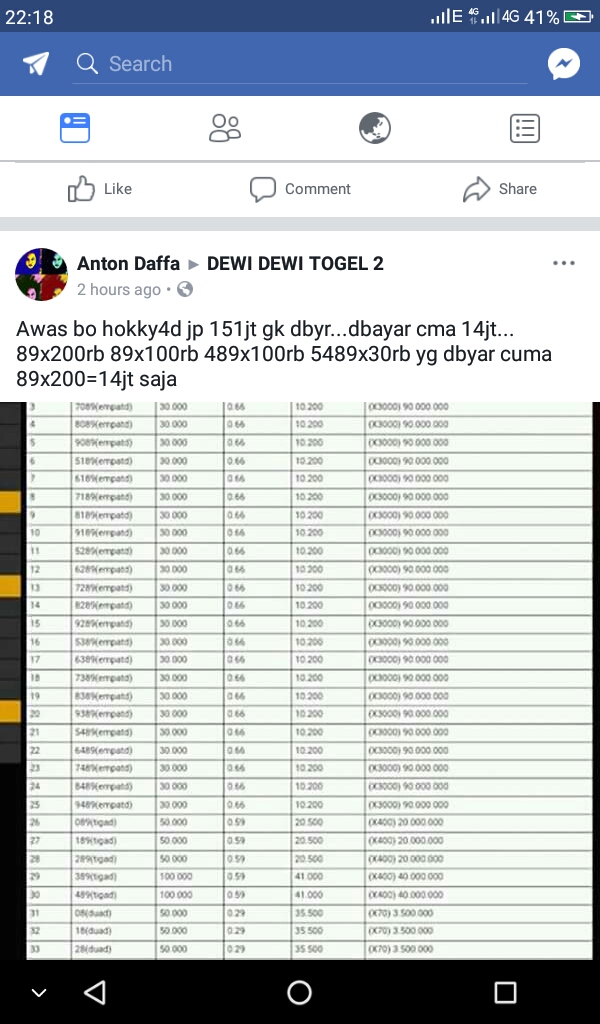 14. Hati2 dg kudatogel. Tgl 23 saya betting 2D dg angka 05,eh ternyata bettingan saya di ganti menjadi 06 padahal saya masang banyak 700rb. Saya rasa karena saya dapat sampai 40an juta makanya bettingan saya di ganti.kesimpulannya kudatogel gak sanggup bayar.