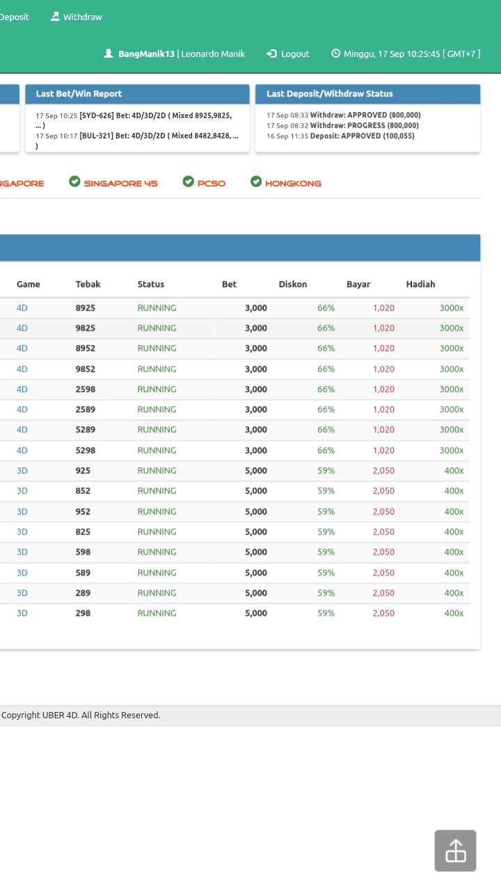 aku jp diatas 10juta hasil 4d.3d dan 2d tapi apa boleh buat akun saya tidak bisa dibuka lagi. padahal di profil uber4d jelas2 ditulis agen togel terpercaya dengan diskon togel dan hadiah terbaik.