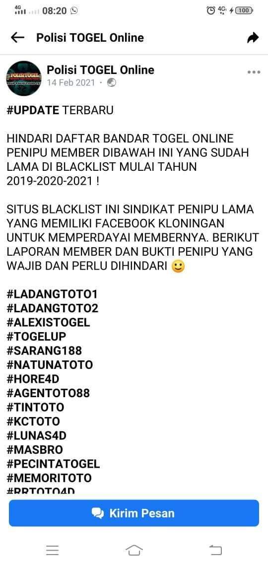 1. polisitogel nggak ada menggunakan FB semua berita yang di repsot oleh mereka itu HOAX semua. masa togelup masuk daftar penipu suruh dia datang ke saya jelas kan di mana penipuan TOGELUP jika benar ada member kena tipu akan kami ganti kerugian nya