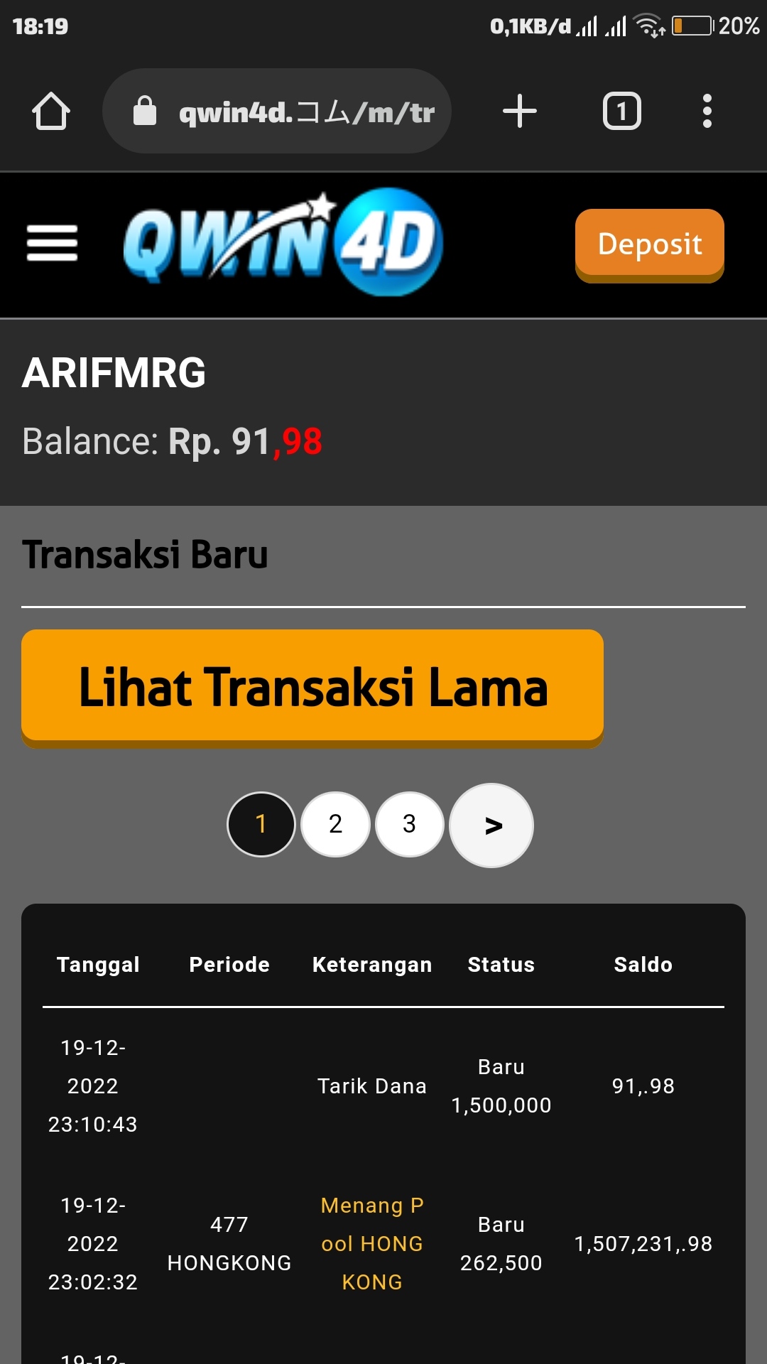 1. Saya menang di bo qwin4d. Tapi pas mau WD nggk di proses .