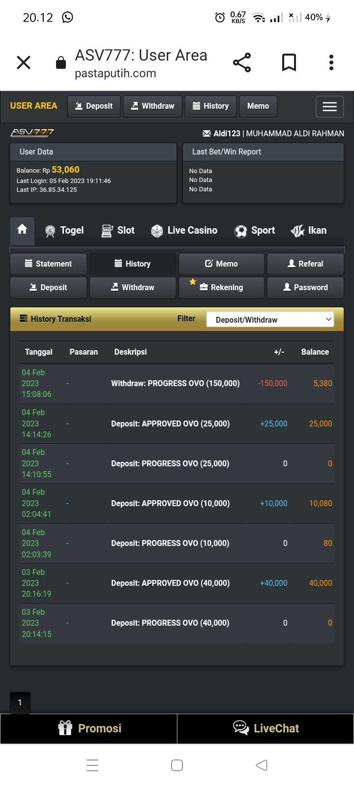 1. Asv777 saya WD 200rb tapi gak bisa saya suruh depo lagi 200rb udah saya depo tapi malah mau login tiba2 password salah