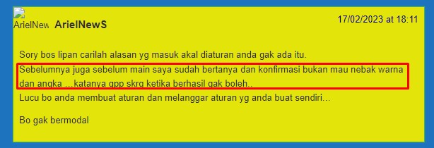 3. @ArielNewS- jangan marah bro 😆 itukan sudah dilampirkan semua bukti dari admin lipantoto bahwasan nya kamu sendiri tidak mengikuti aturan.. bukan nya dikarenakan masalah bo rekomendasi dari team kami akan melindungi kalau dia salah yang salah itu dari anda sendiri melanggar aturan bo