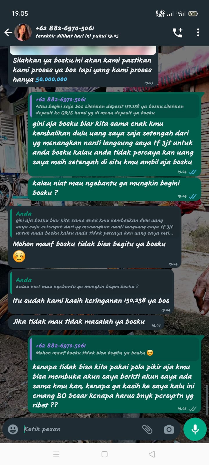 3. kasus nya sudah saya teruskan ke bos nya lewat fb dan dia sudah block sy jadi tidak bisa untuk komunikasi lagi dengan bos nya, begitula jika bo bukan rekomendasi saya lagi seenak nya untuk mencurangi member.. intinya silahkan sobat buat laporan valid akan kita tindak lanjuti kasus nya