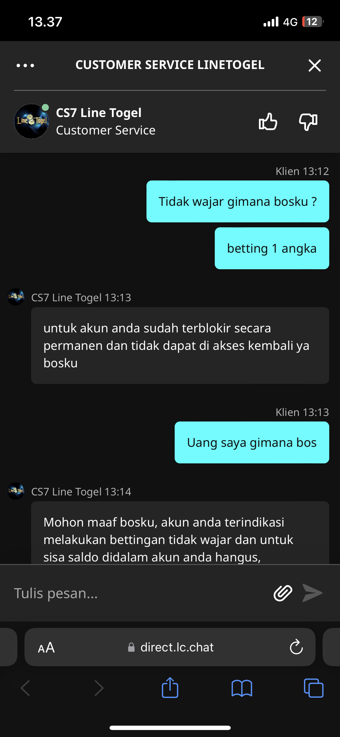 37. Mohon bantuannya bosku saya pasang di Sidney hari ini jp 2D langsung WD 1.600 gak di bayar di bo MANATOTO di bilang curang,padahal saya bet 30 angka ada yg 20 rb 5rb sama 19,18rb 1 nmr nya..Mohon bantuannya bosku..sekarang lagi di suruh tunggu id saya di blokir juga