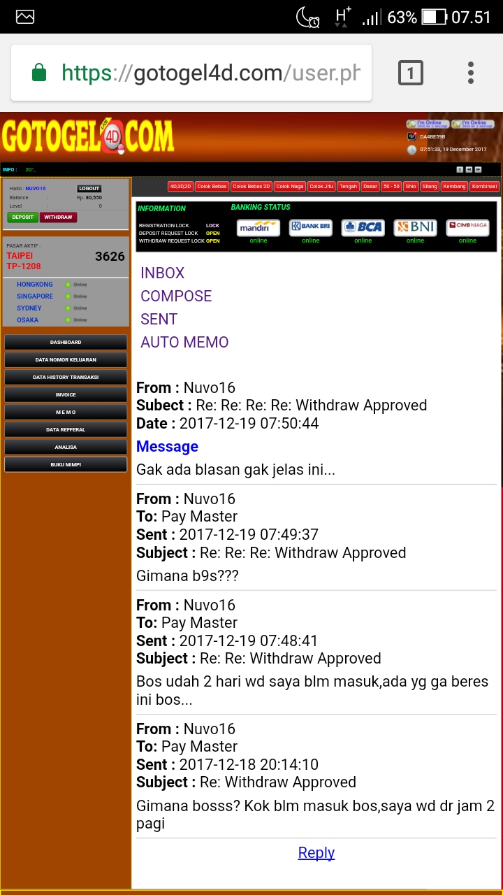 Laporan member agen togel online tentang keluhannya.Keluhan ini kami terima dari member-member agen judi togel online