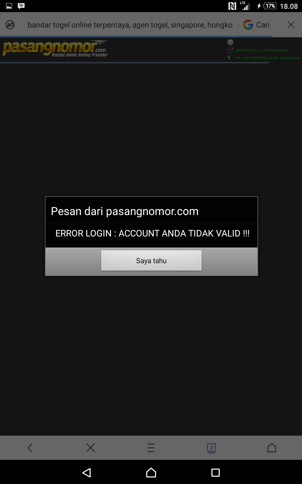 20. bos???saya dah jd member di lmtoto koq gak bisa masuk padahal tadi malam habis buat main sekarang gak bisa katanya password salah padahal gak pernah ganti???tolong infonya