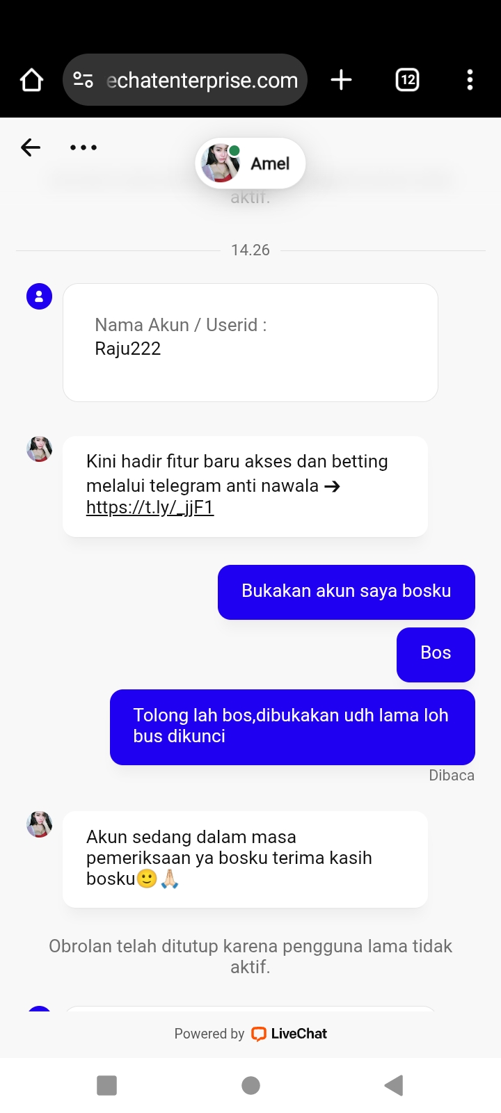 1. sudah menghubungi adminya sob?saya ingin melihat chat dengan adminnya