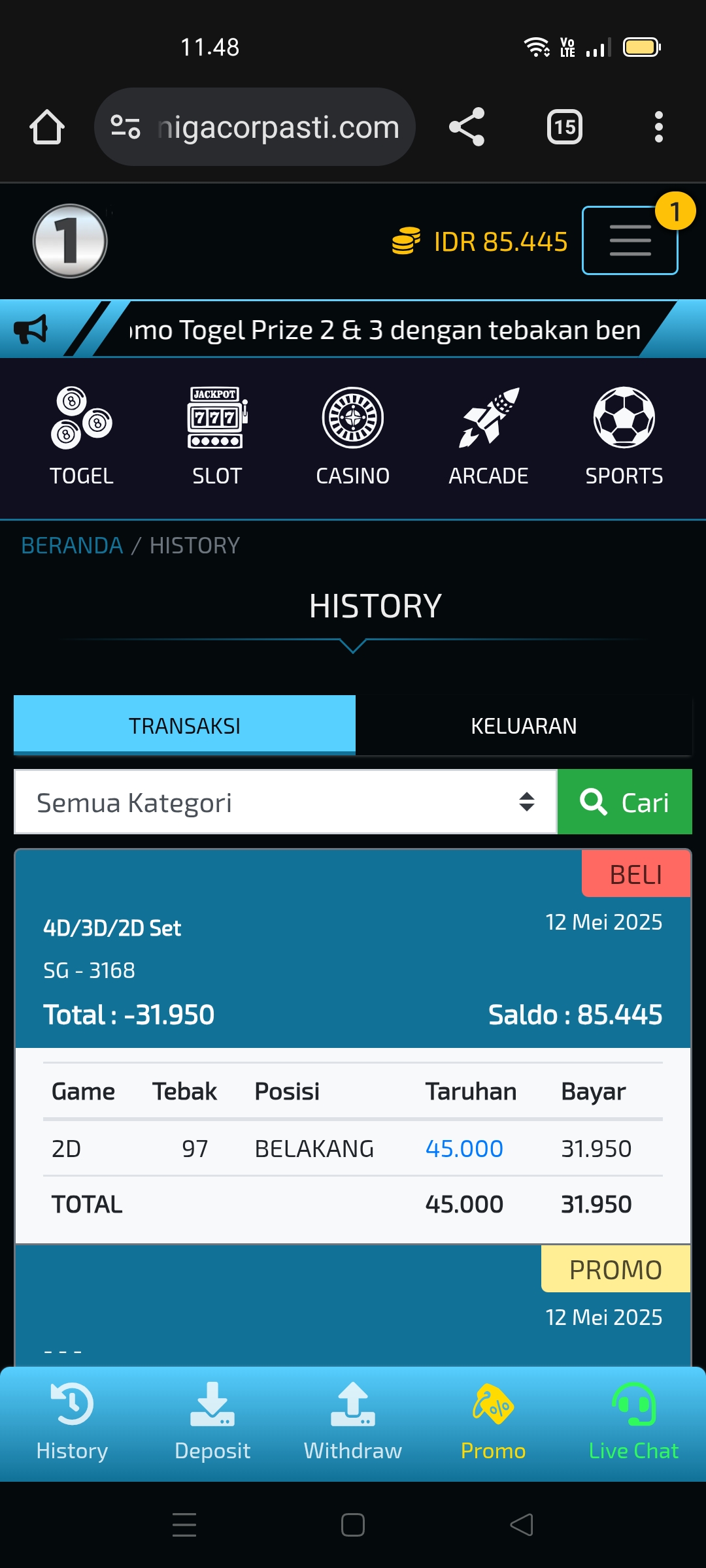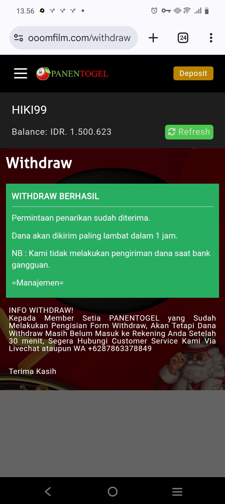 28. Ini tadi saldo saya ada 1500.000. Wd 1.200.000..