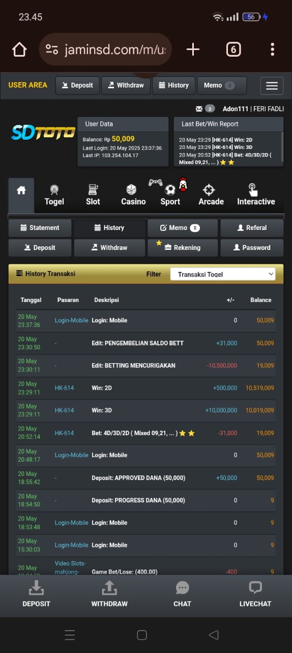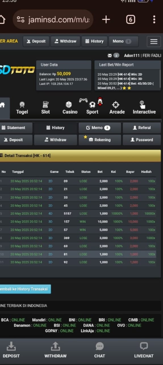 Laporan / Keluhan : main hk pools. pas result uda senang. check history di web lotus. kena jp 3d.