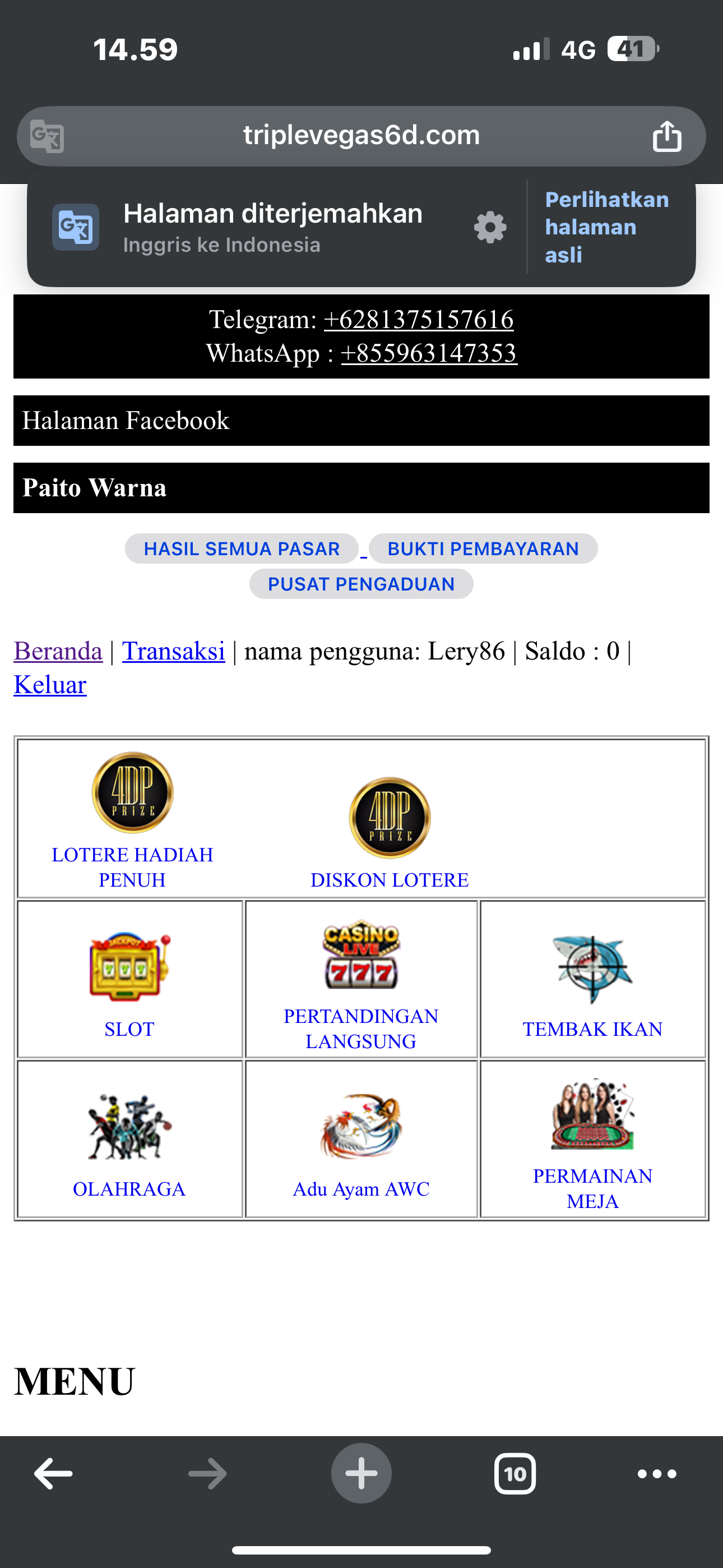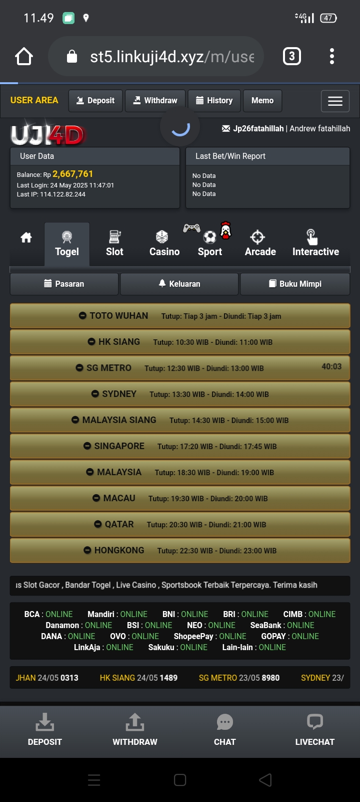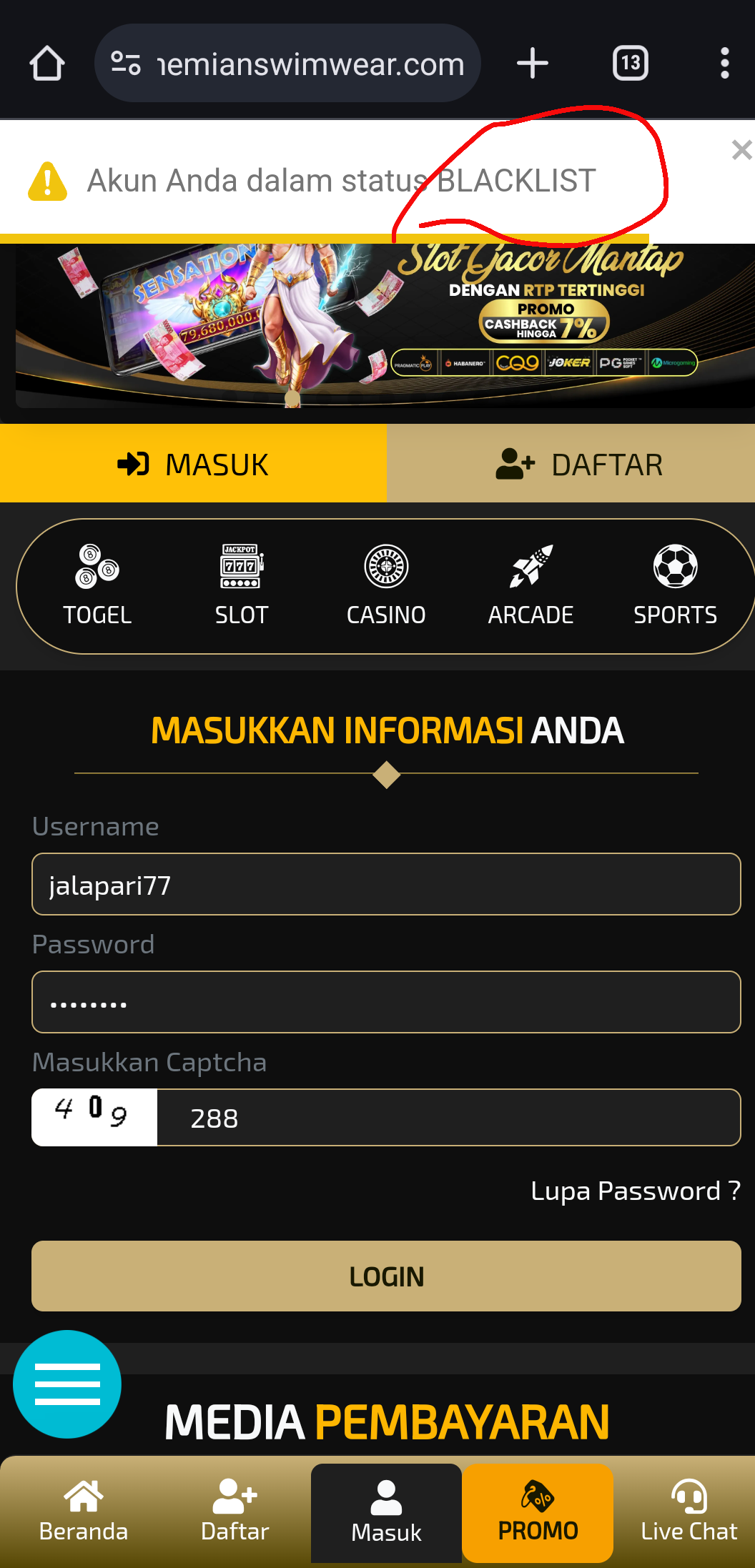 Laporan / Keluhan : tidak bisa login karna saya dapat 4d bet 500