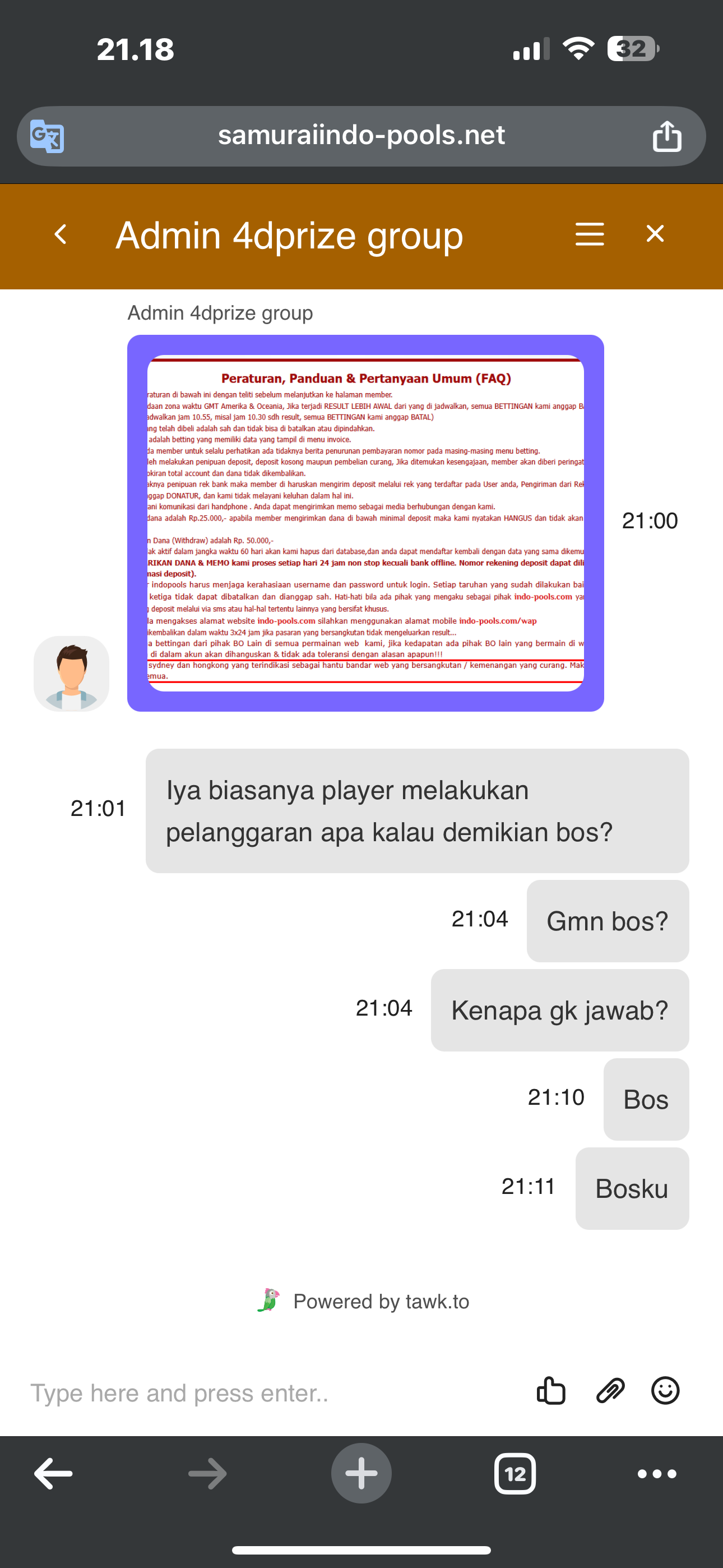 39. Halo bos, buat laporan situs naga6d WD 3,5jt GK di bayar, malah di blokir