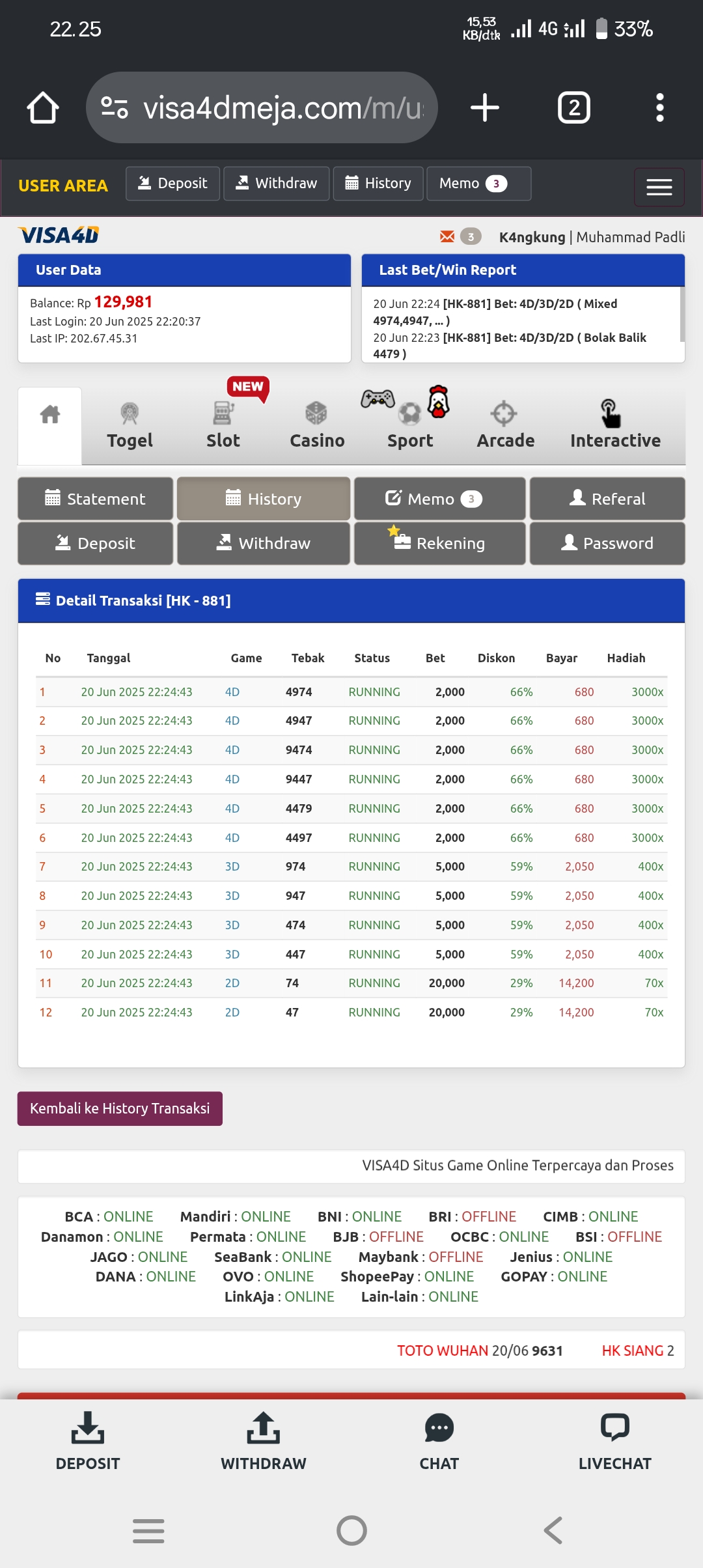 2. Saya ada 3 akun di visa4d bang, yg aktif depo cuma 2. BRI dan Dana.