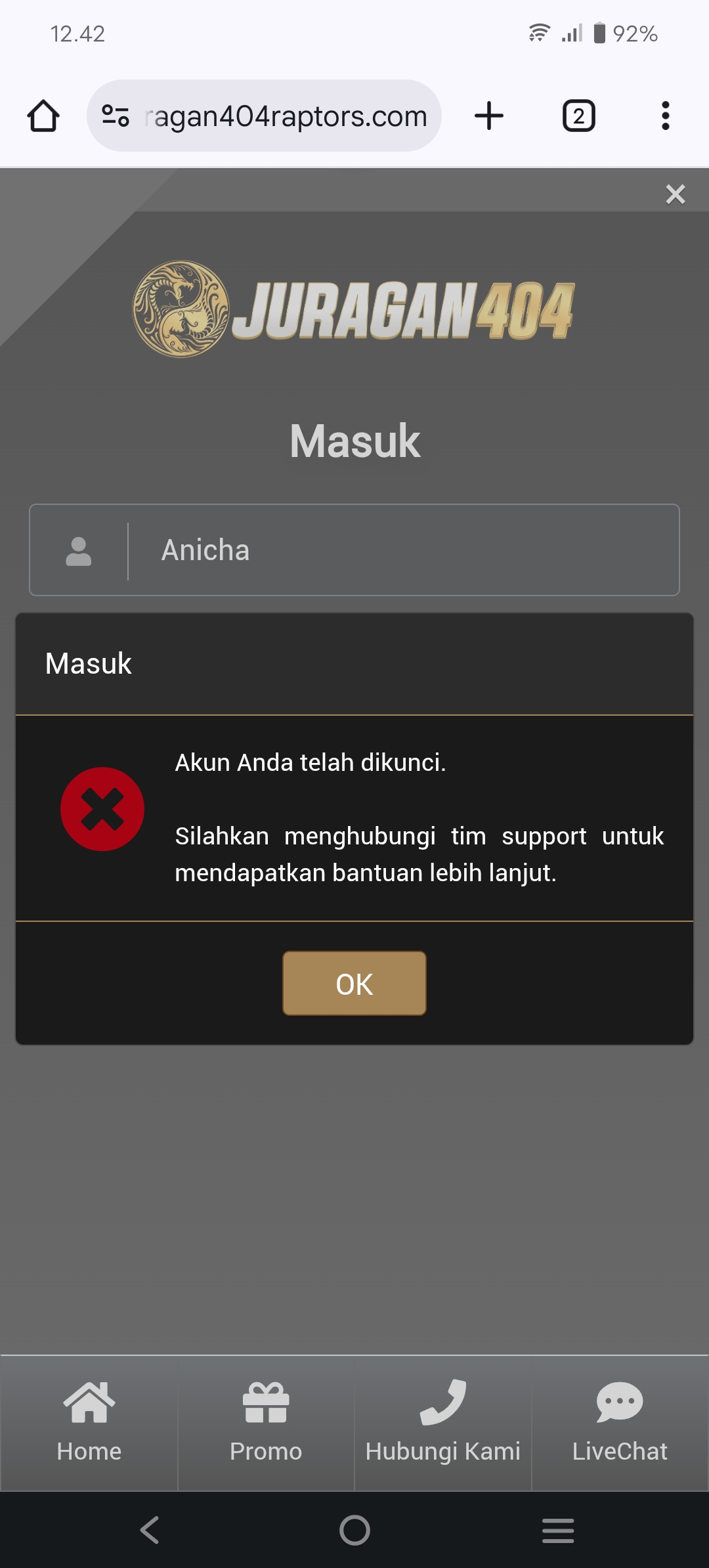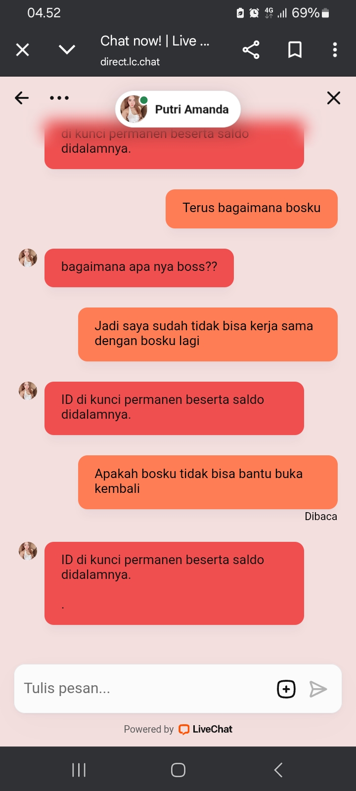 Laporan / Keluhan :kemenangan ditarik bo + akun diblokir