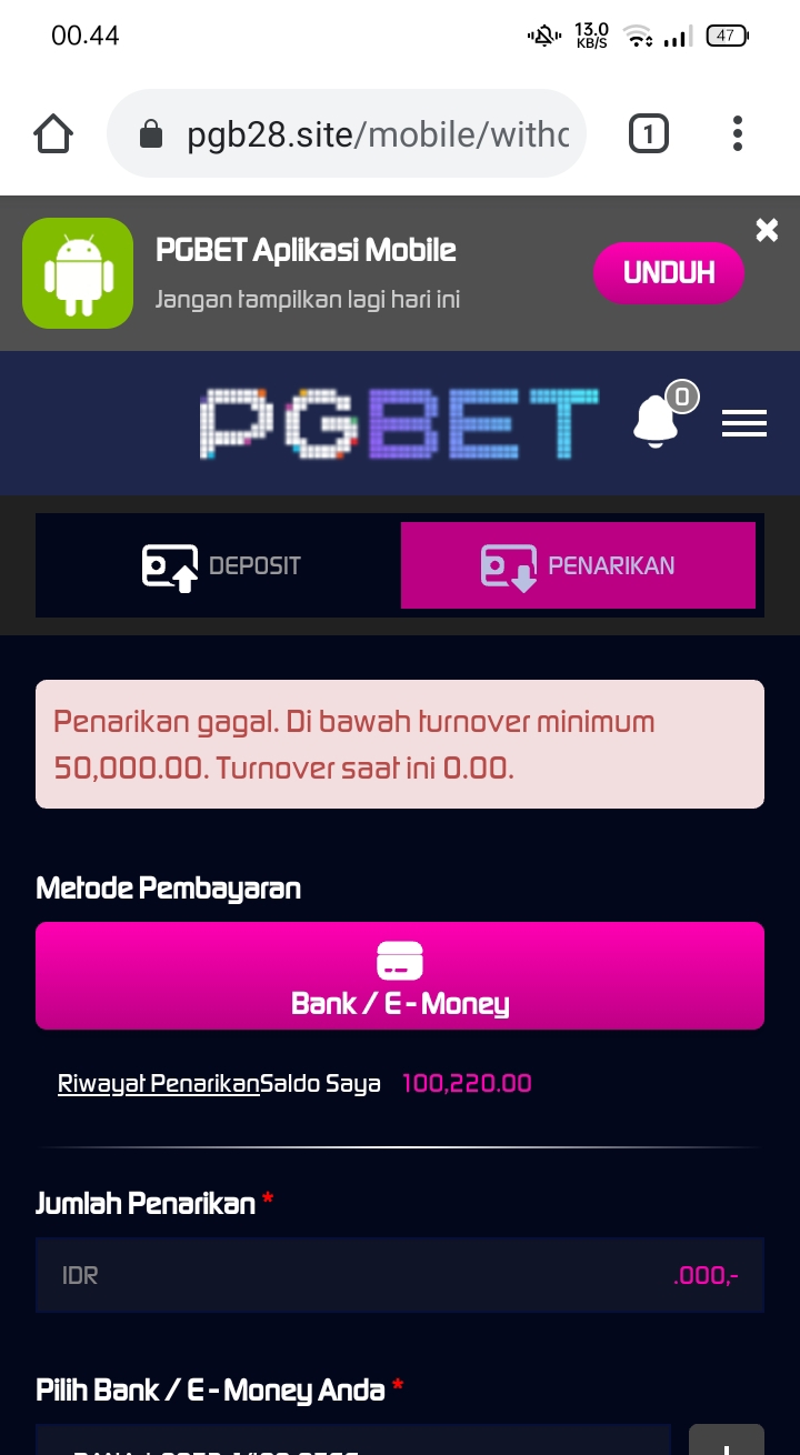 Kpk100 withdraw 520.000 tidak mampu bayar