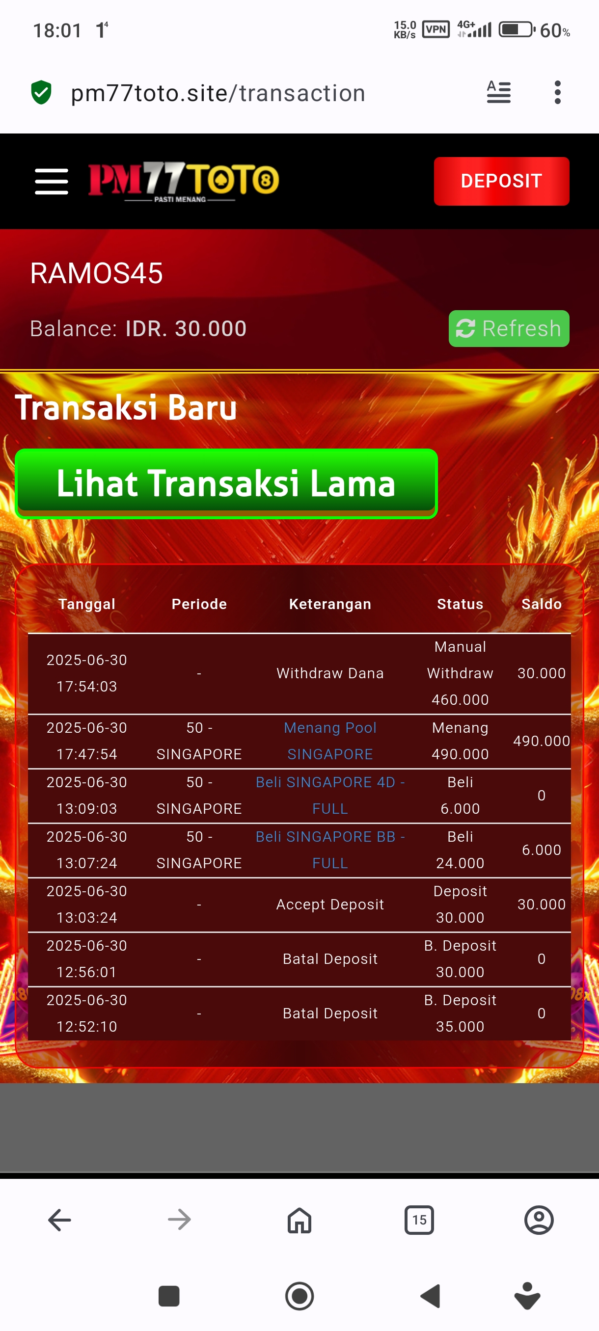 Kack minta tolong,saya main di SDM toto,saldo saya kan 12jt kack,habis itu tak tarik 2jt,terus tak maini lagi tinggal 7jt,habis itu saldo saya hilang kack,terus ada yang wa suruh transfer 500 ribu,udah saya transfer tapi saldo yang di situs masih gak ada