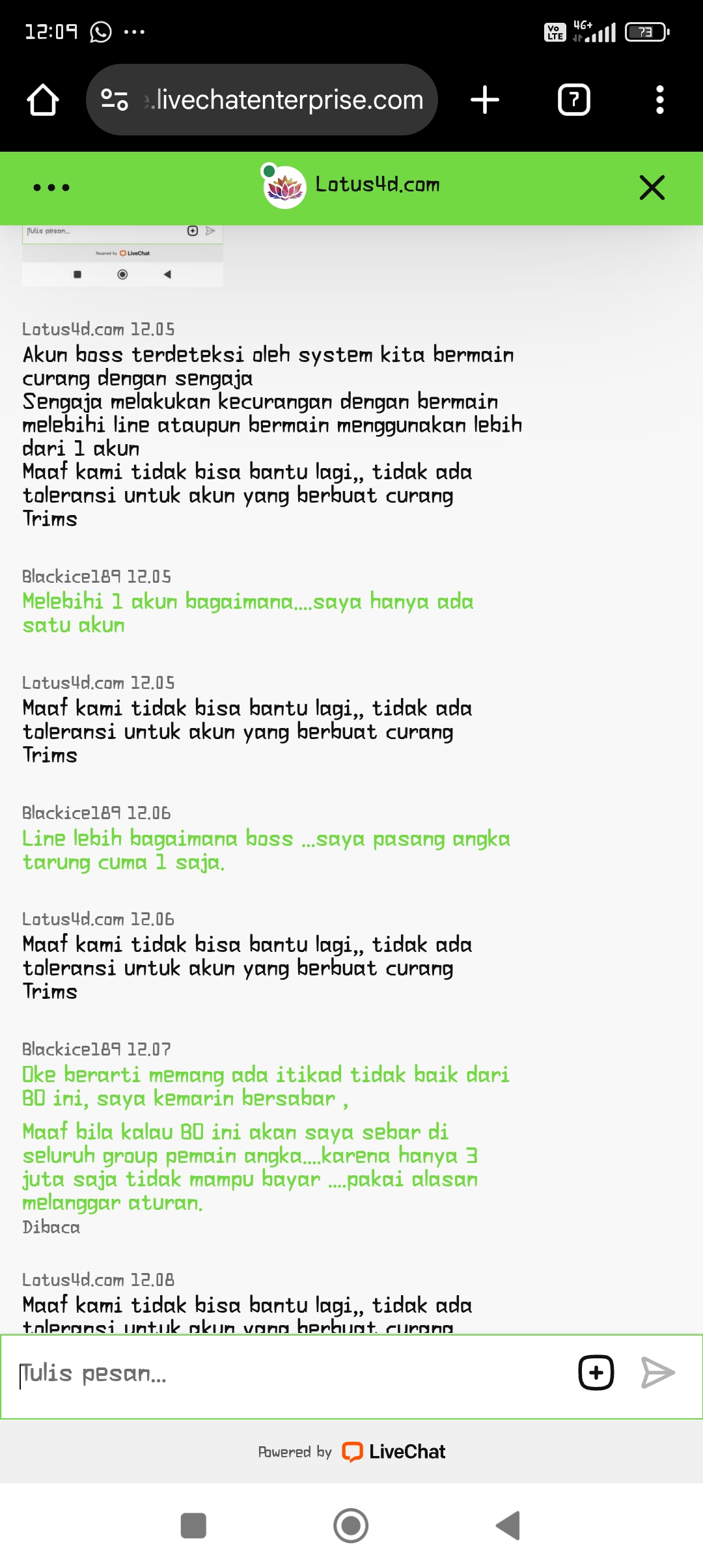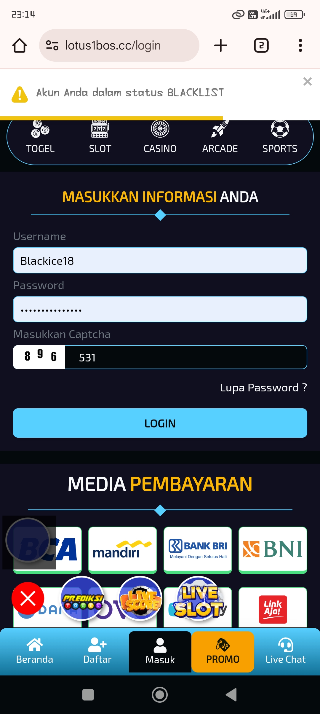 Pasang bet Discount 1.000,- Result HK Pools 3683, Pas saya mau login di BO LOTUS4D, yang BO non IDN dari rekomendasi Polisitogel Dan Ikut REFERALL Polisitogel….. Akun saya dalam STATUS BLACKLIST., padahal saya sudah beberapa kali main disana tidak bermasalah.