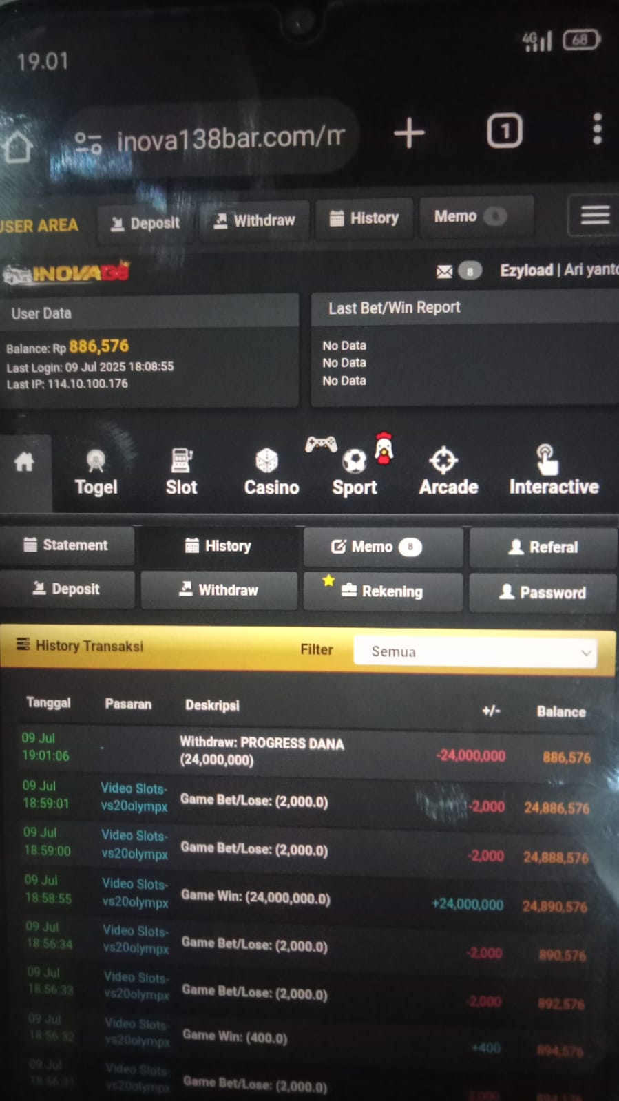 1. bermain berapa lama sob 3jt bet 800,ada bukti transaksinya?