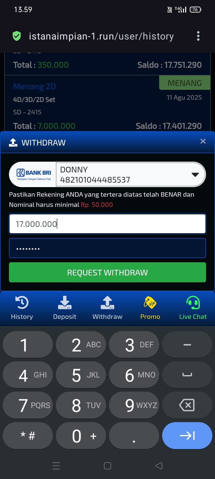 4. sampe sekarang belum dibayar WD 400K. alasan nya terdeteksi curang. padahal 3d x1 doank masih aja member diTIPU