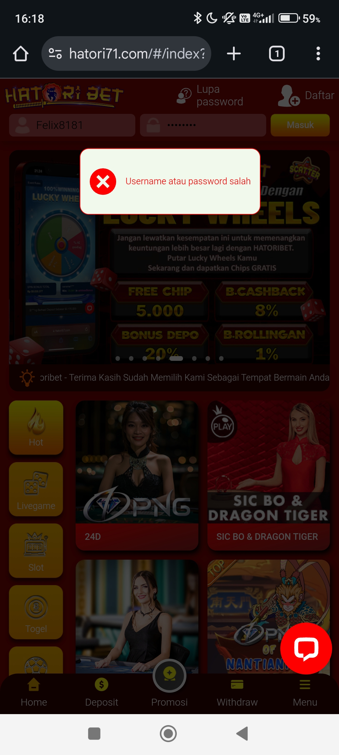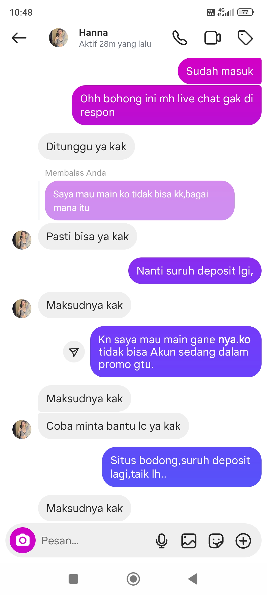 15. Di janjikan depo bisa WD ,pas depo udah masuk di proses tp buat main ga bisa ,di chat udah ga di bls