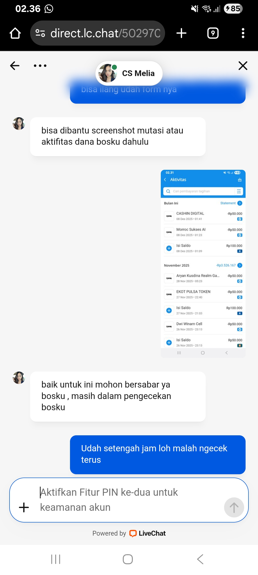 1. di tanyakan di livechat nya sob,di tanyakan kendalanya apa