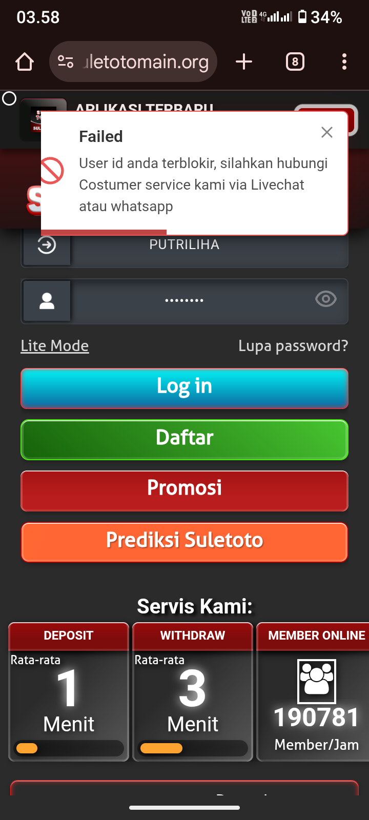 2. Bantu saya bosku saya di blokir di web Racun Toto, saya kasih komisi kalau bisa di withdraw, saya langsung di blokir sama admin nya