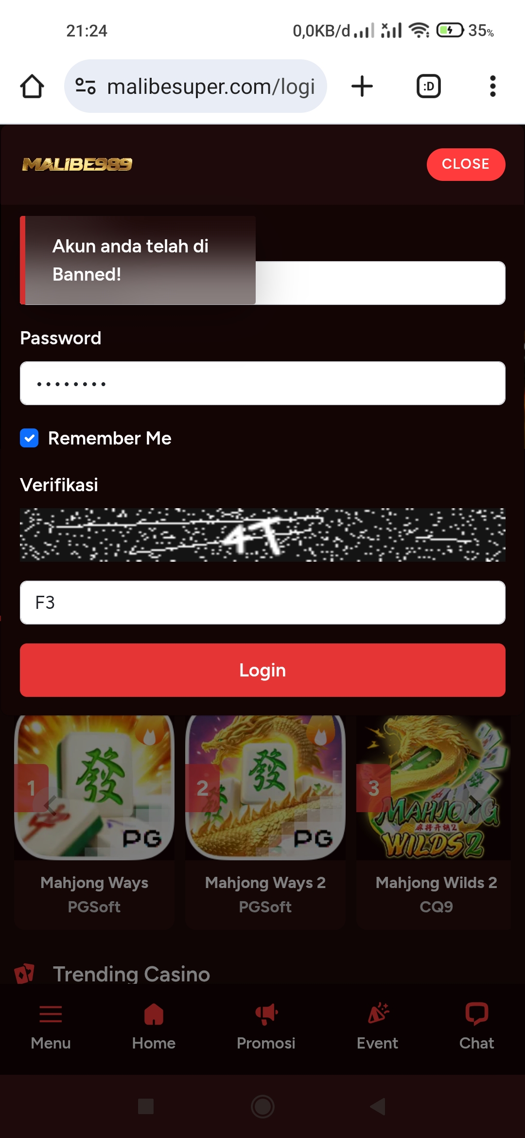 3. SITUS MALIBE989. Situs penipu kemenangan slot 350 rb tidak dibayar. Akun dibanned. Alasannya karena pelanggaran. Hati hati.. Situs penipu.