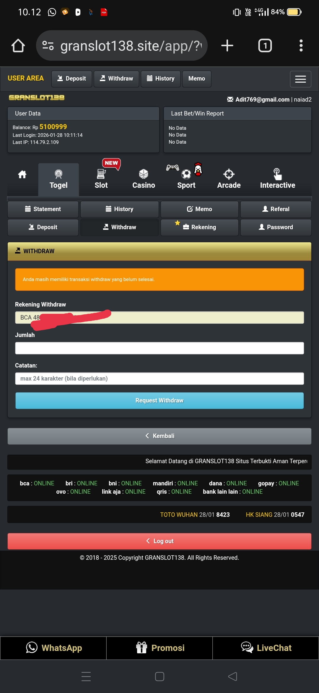 31. Info jangan main di usb togel wd dari tanggal 28 desember ga dibayar, tapi status berhasil