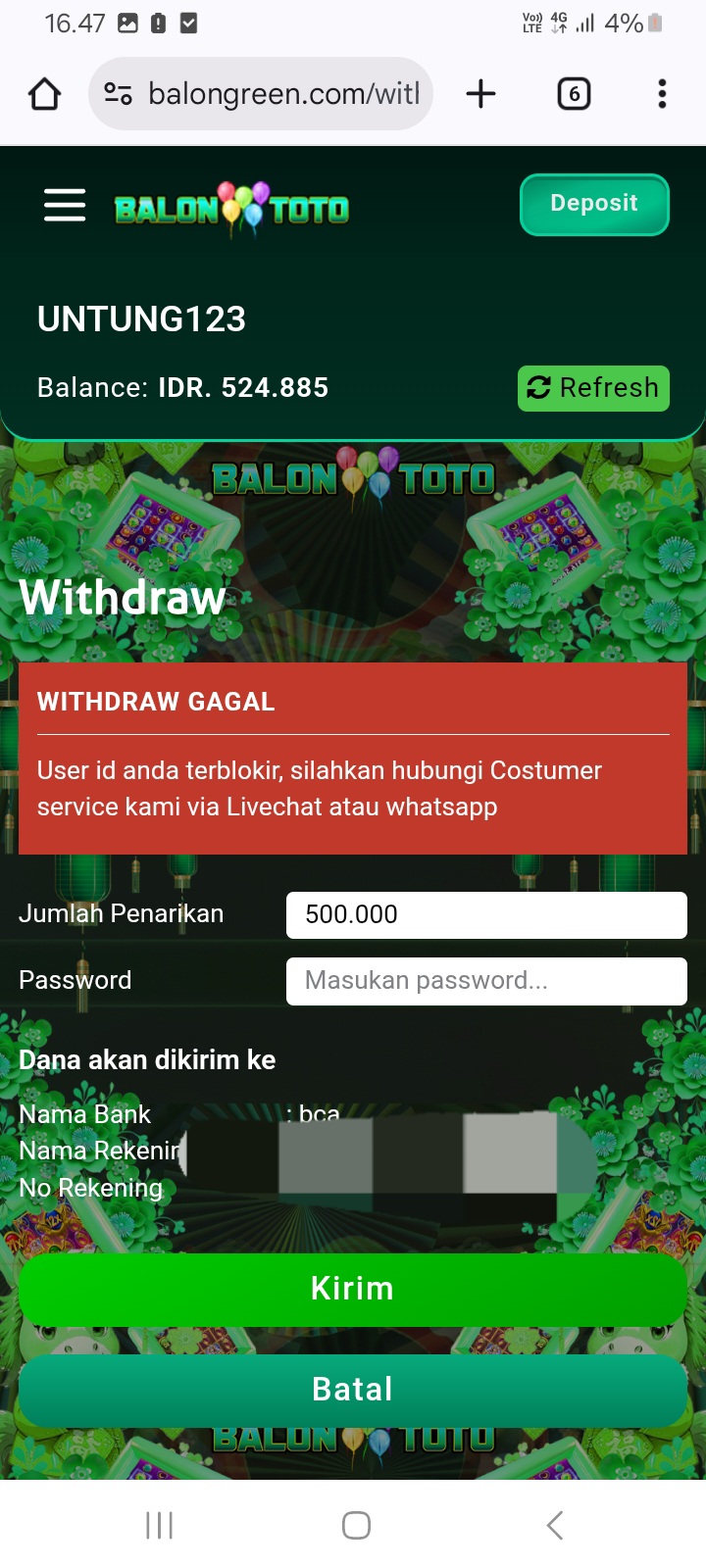 17. Cendana Toto WD 5000000 tidak di proses akun di blokir
