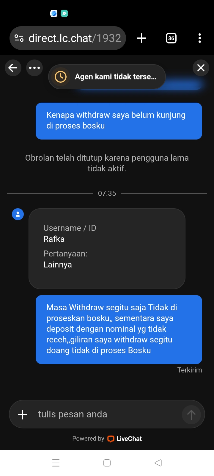 50. Withdraw saya tidak di proses oleh situs LIMAMEJA