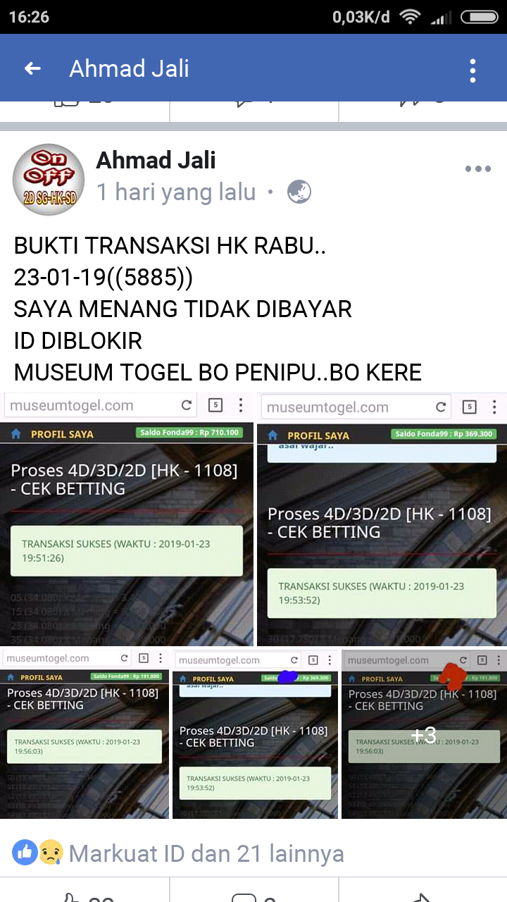 Inilah Tempat Membuat Laporan Penipuan Yang Telah dilakukan oleh Agen Judi Online atau Togel Online Penipu.Laporan Yang ada Buat akan kami Teruskan Ke Fihak Agen Togel Online Yang anda laporkan sebagai Tindak lanjut Dari laporan atau Pengaduan yang Telah anda Buat.Jangan Ragu Untuk Membuat Laporan Kepada Kami,Laporan Anda Sangat Berguna Untuk orang lain Sekaligus Menjadi Filter Terbaik dalam memilih Agen Judi Online.Sudah Banyak Pemain Togel Online dan Pemain Games lainnya yang sudah tertolong dengan laporan yang sudah diterbitkan.Agen Judi Online di Asia khususnya di Indonesia Sudah menjamur dan Tidak sedikit Korban Penipuan Terjadi Secara Continue Oleh Agen Judi Online Penipu ( BO Tanpa Modal ) yang memang hanya ingin mengambil Keuntungan dari Dana Membernya kemudian Kabur lagi.