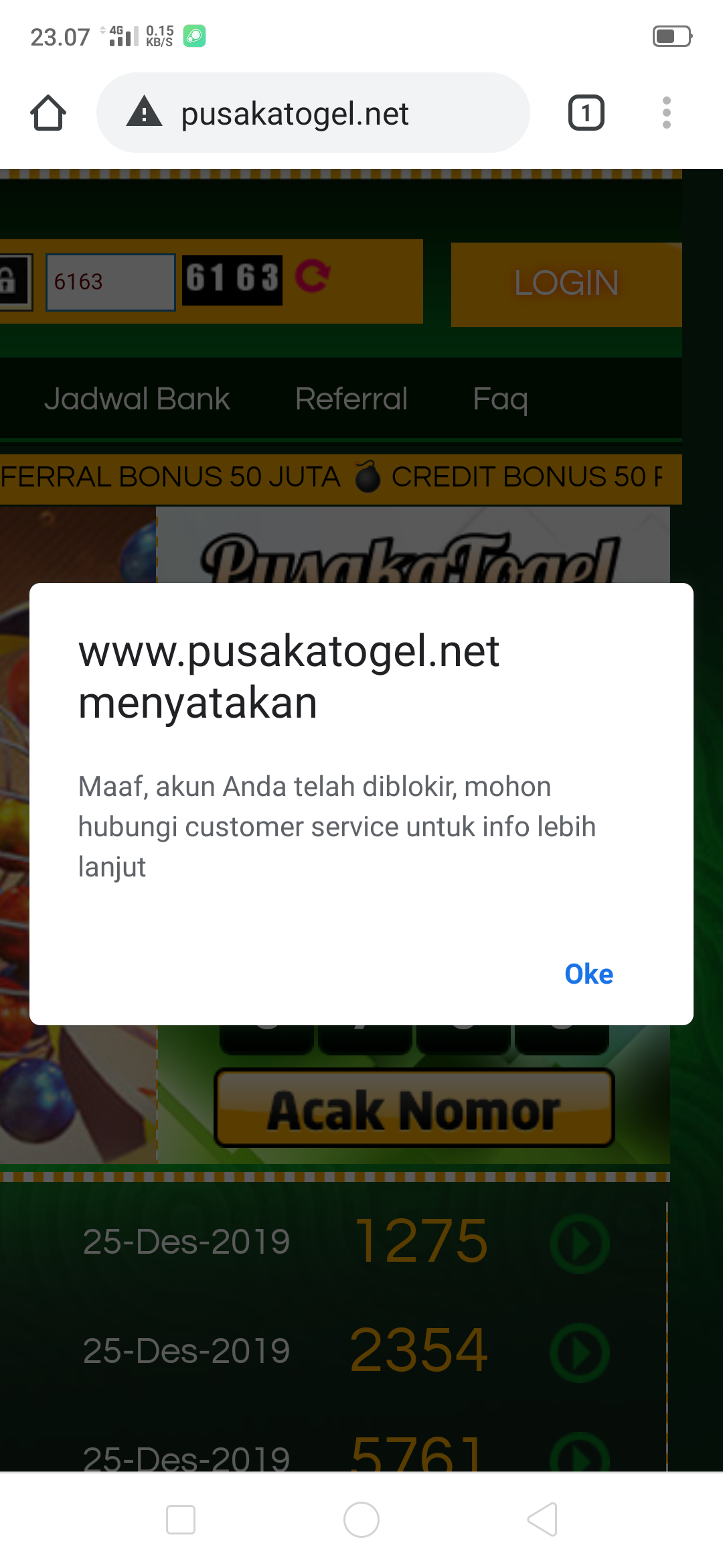 46. Saya di blokir oleh bo pusakatogel terjadi hari ini tgl 25/12/2019 saya jp 2d 70x18ribu
