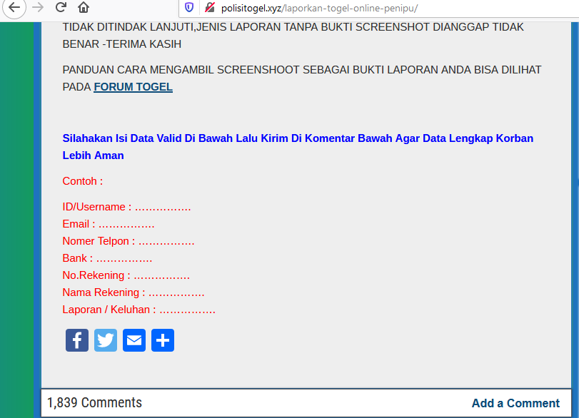 BUAT LAPORAN PENIPUAN OLEH AGEN TOGEL ONLINE