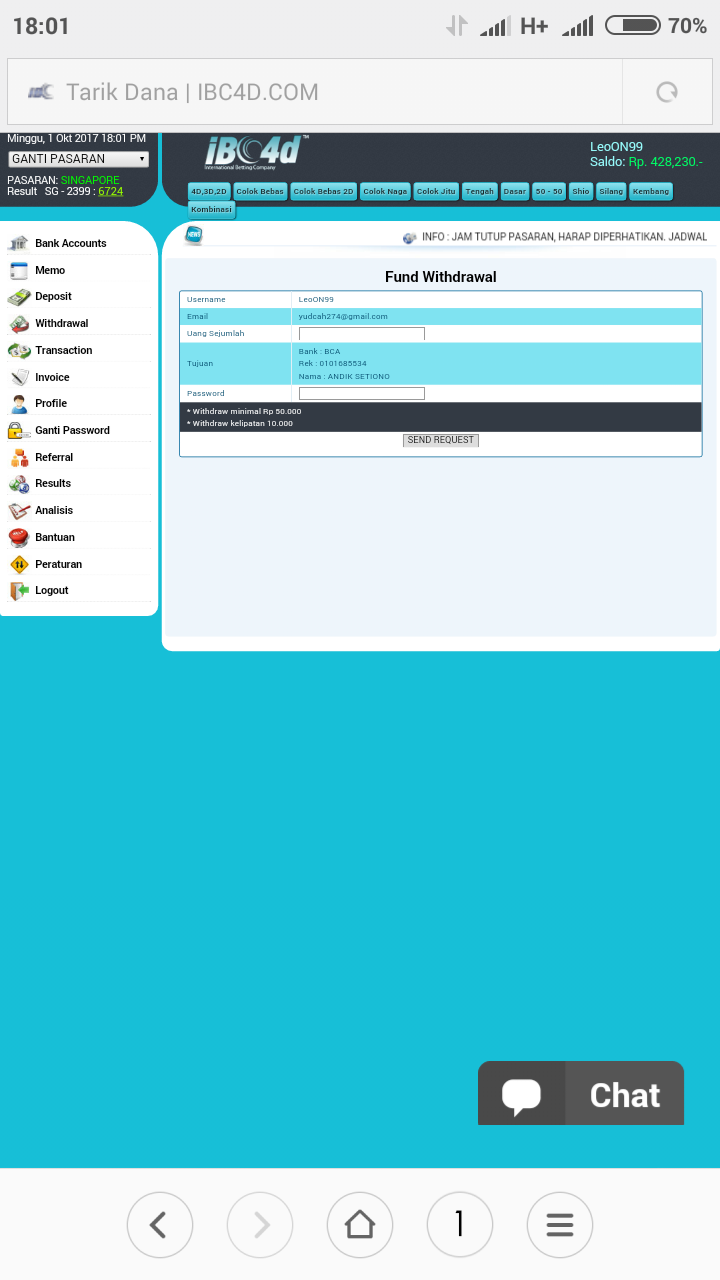 Ini saldo saya setelah result sblm saya WD