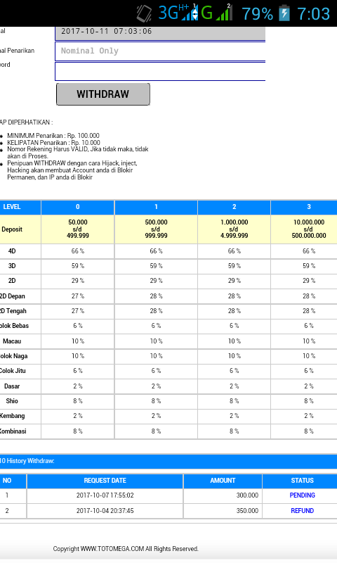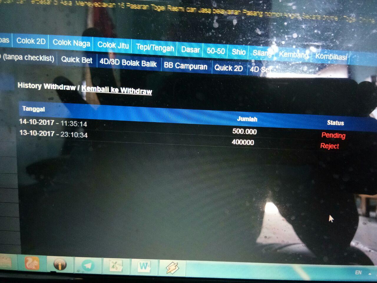 4. bos ini saya lampirkan tambahan bukti saya tarik dana 400000 dari deposit saya di TOTOMEGA tapi tidak masuk direkening saya