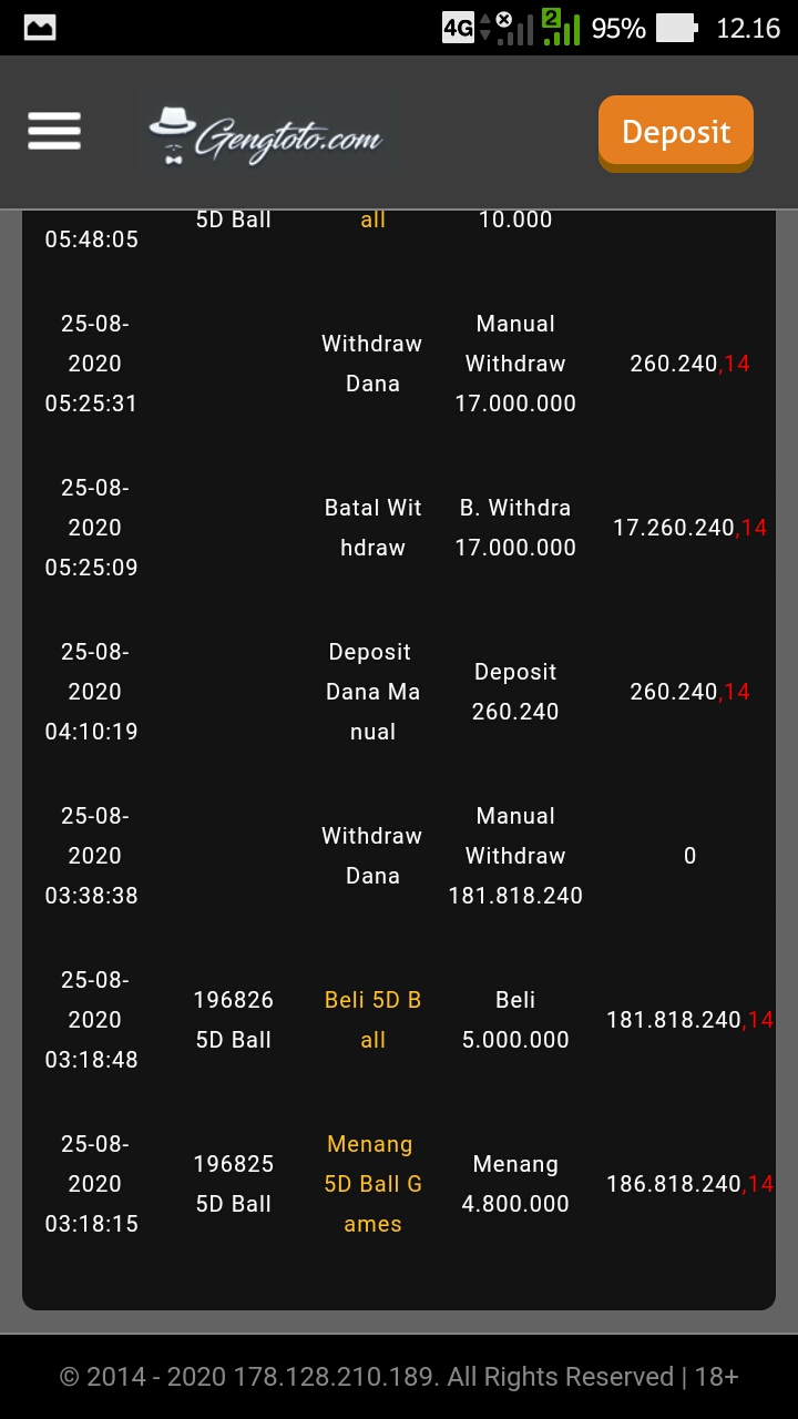 Main di 5Dball,modal 50rb jp trus sampai saldo jadi 181jt,tiba” wd manual saldo jd Rp 0,tp ga ada dana masuk ke rek,sy chat csnya,alasannya seperti yg sy ss diatas,smua bukti ada sy ss semua