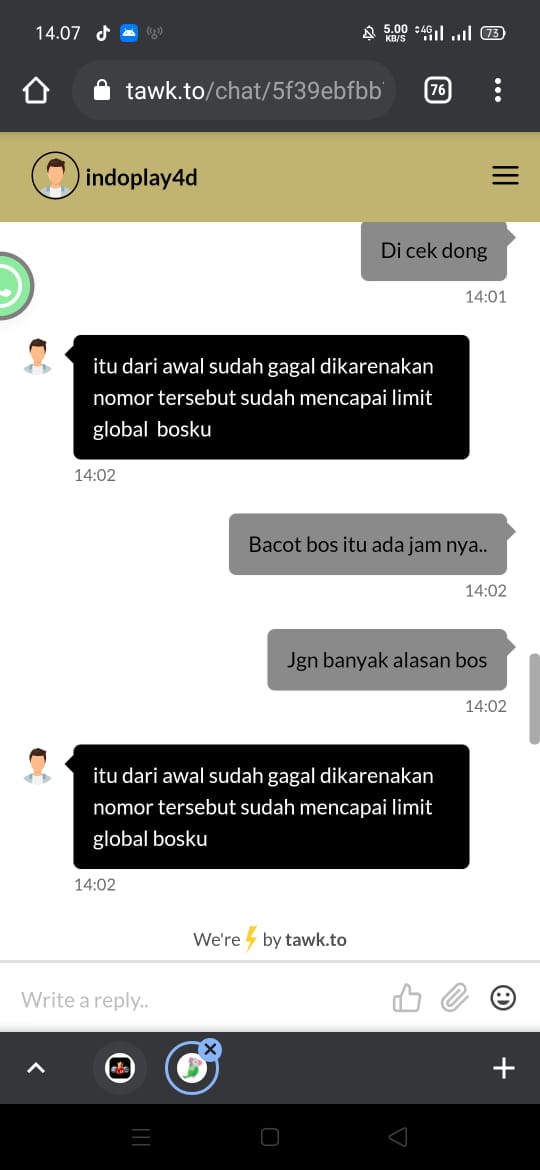 LIVECHAT DAN WA GAK DI RESPON..SEMOGA BOS MANAGEMENT TOGEL WOW DAN KRU2 NYA CEPAT DI RESPON OLEH SANG KUASA..