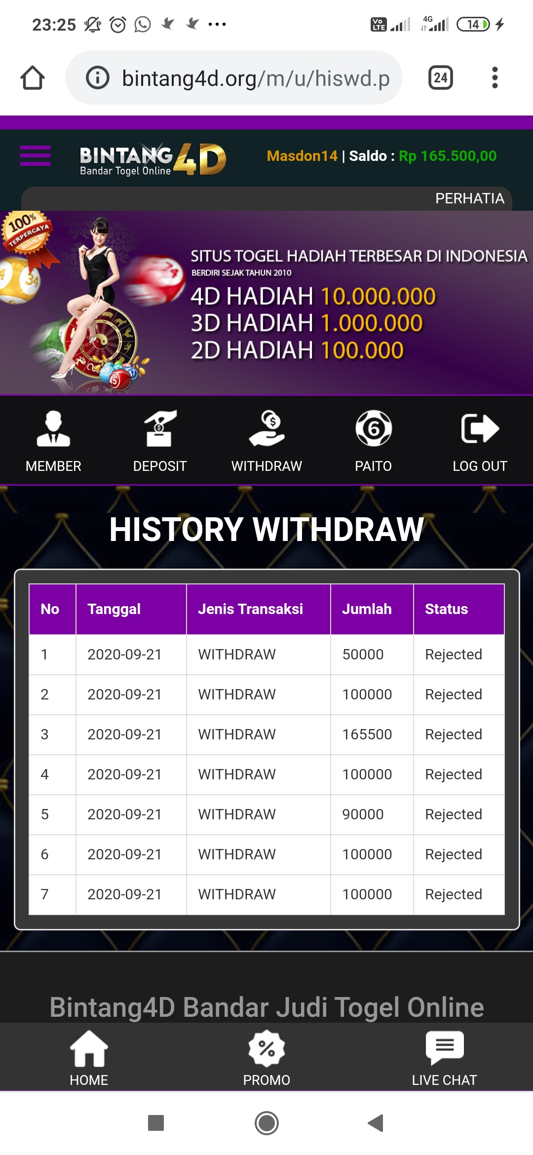 1. Ini bukti nua kalo bintang4d.org ga bisa nge WD