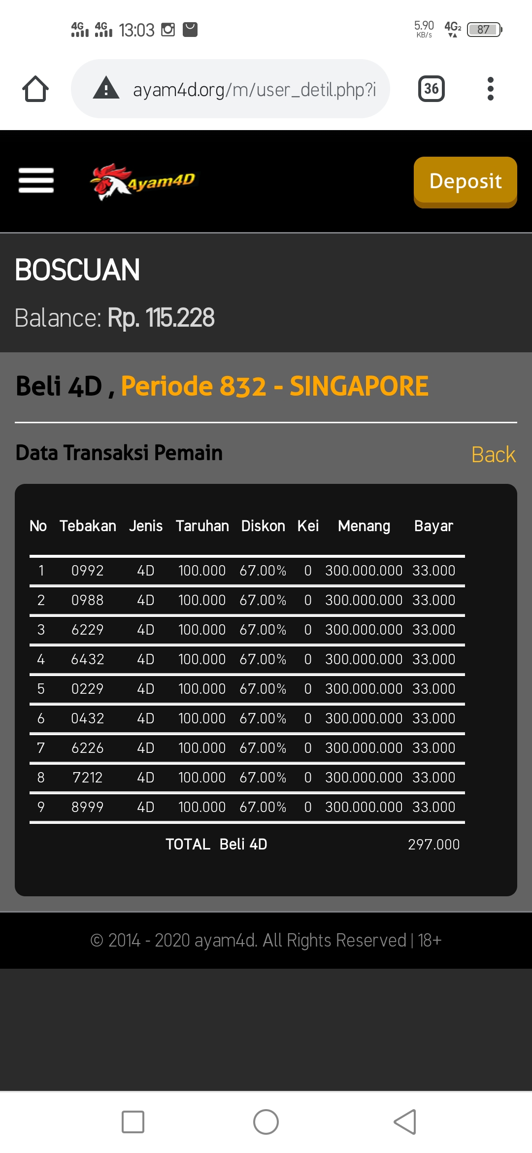Laporan / Keluhan :dapet 4 angka total 104 juta lebih id langsung diblokir ga bisa dibuka dengan banyak alasan terus