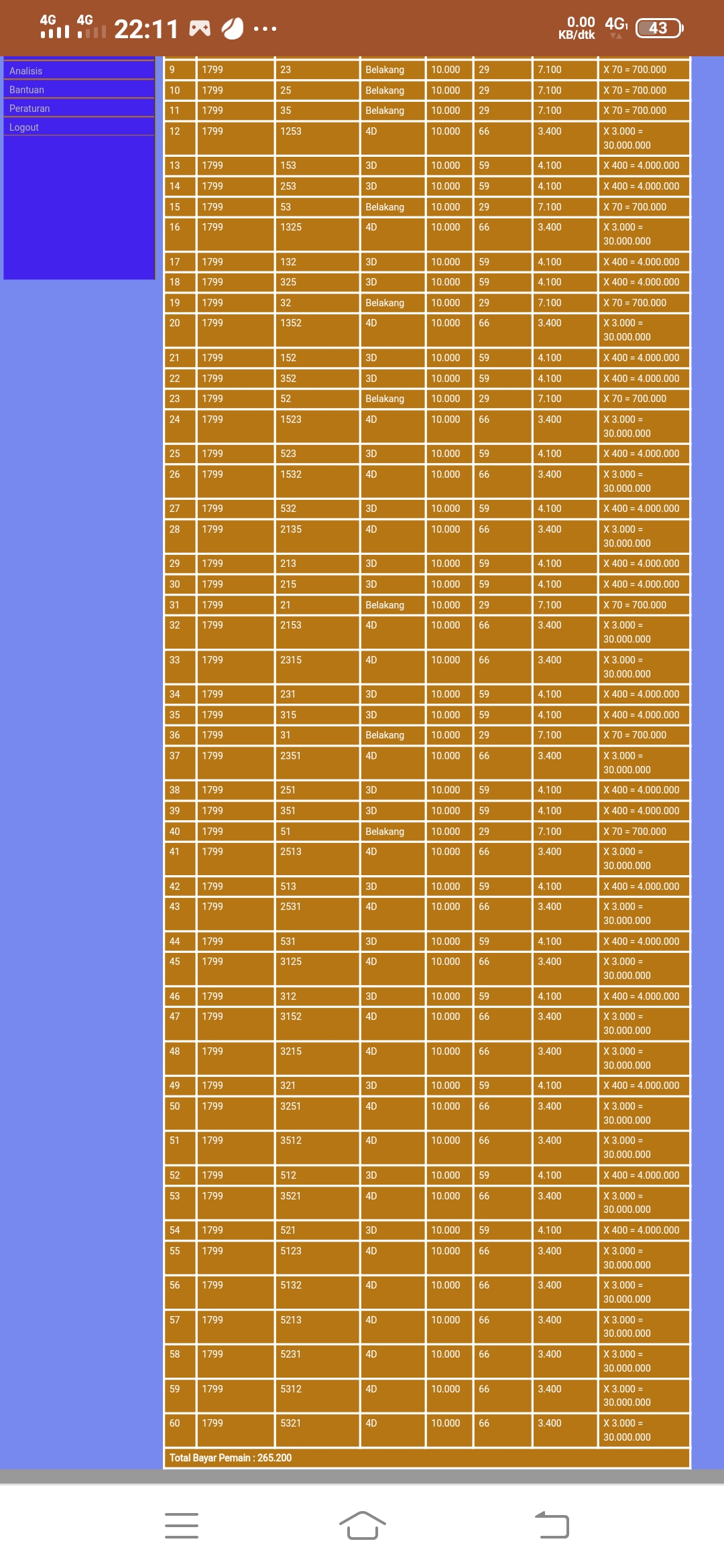 47. Saya JP 2D dan 3D sebesar 1.100.000