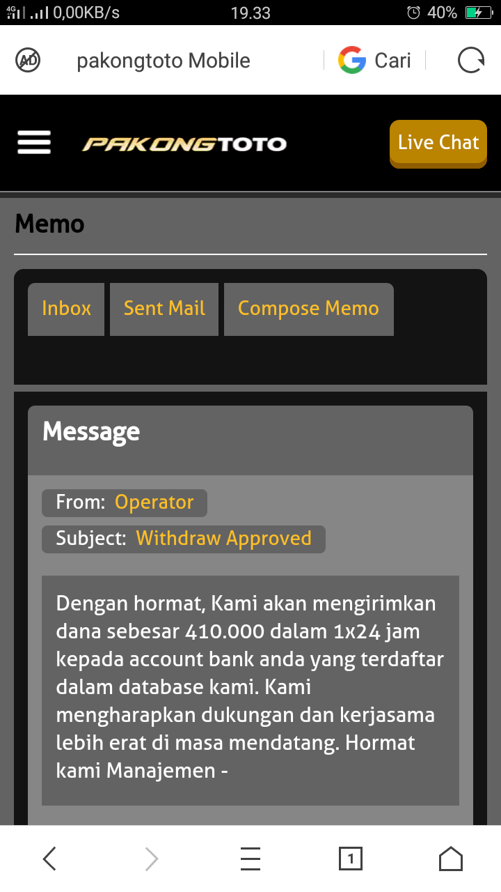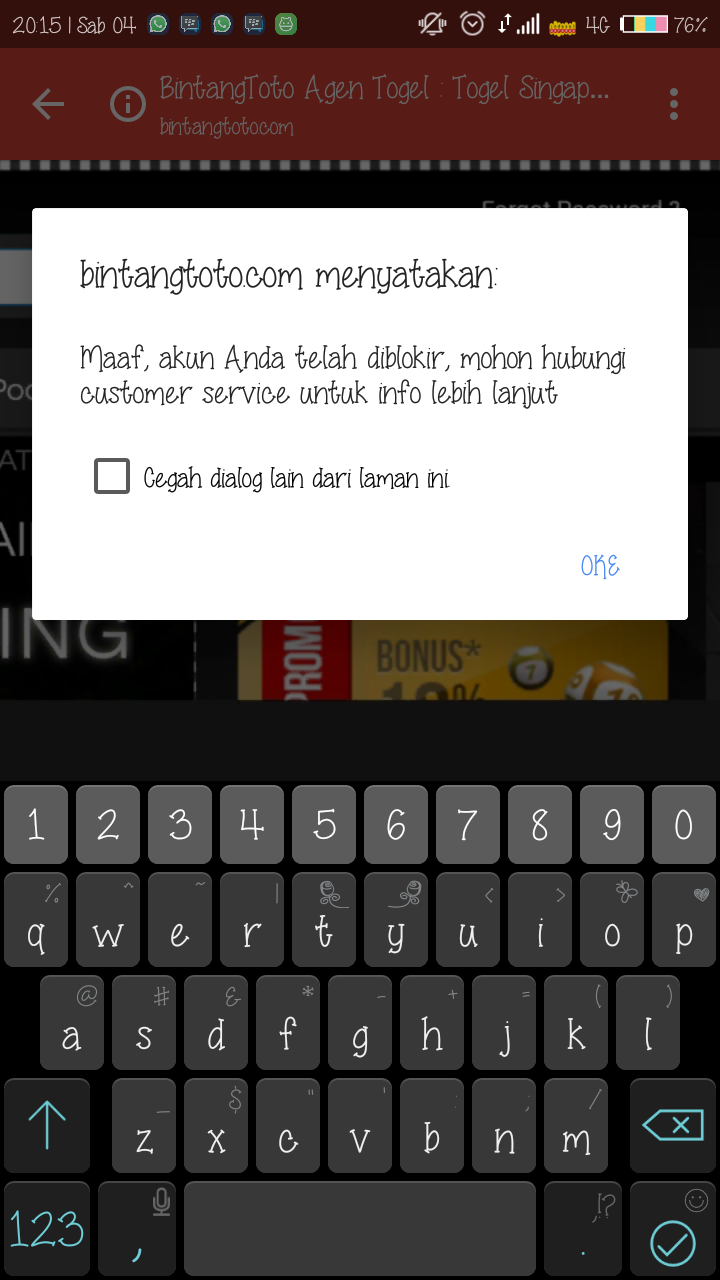 Saya jp 4D bet 2rb tpi akun lngsng d blok