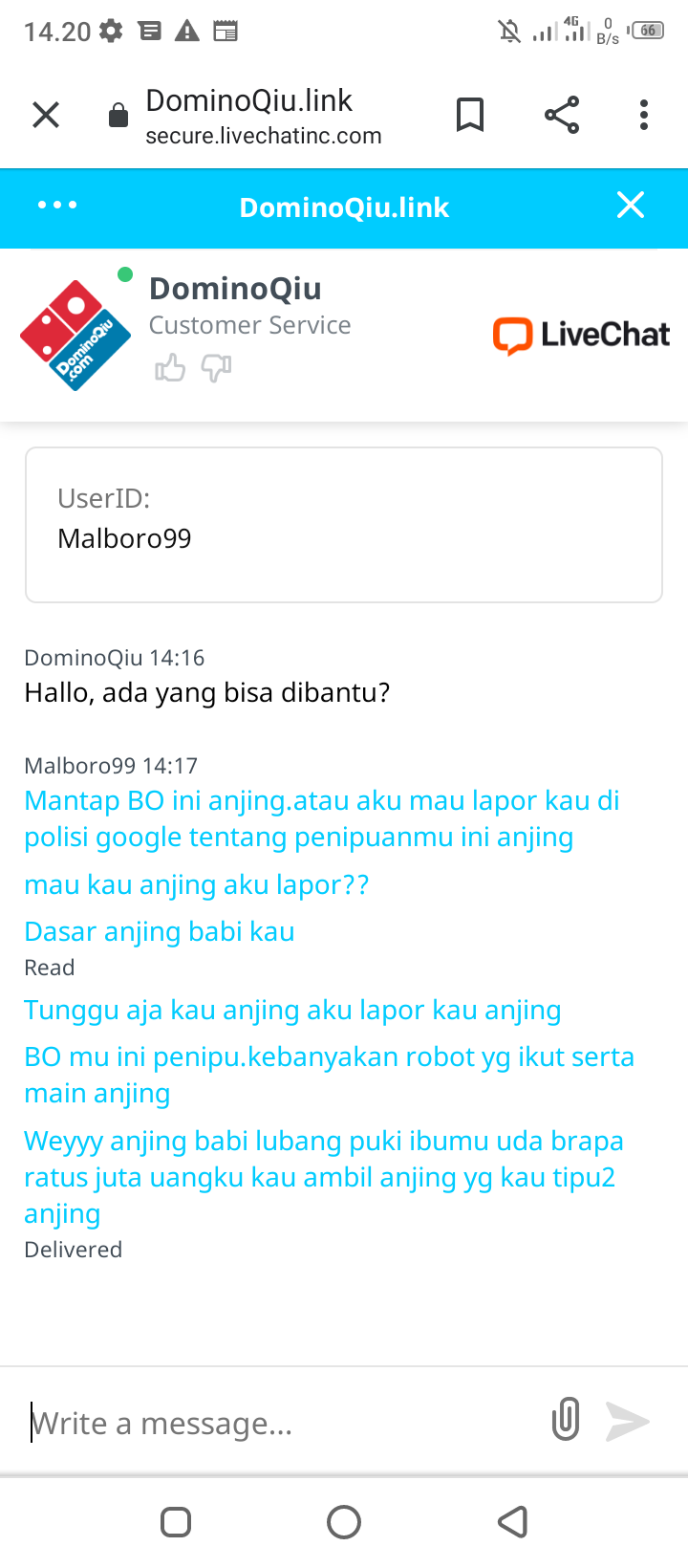 14. Bos,numpang tanya klu mau lapor kan BO DOMINOQIU.LINK/DOMINOQIU.COM GIMANA YAC.INI BO PENIPU.MASA AKU MAU WD NGGA BISA.TOLONG DONG INFONYA