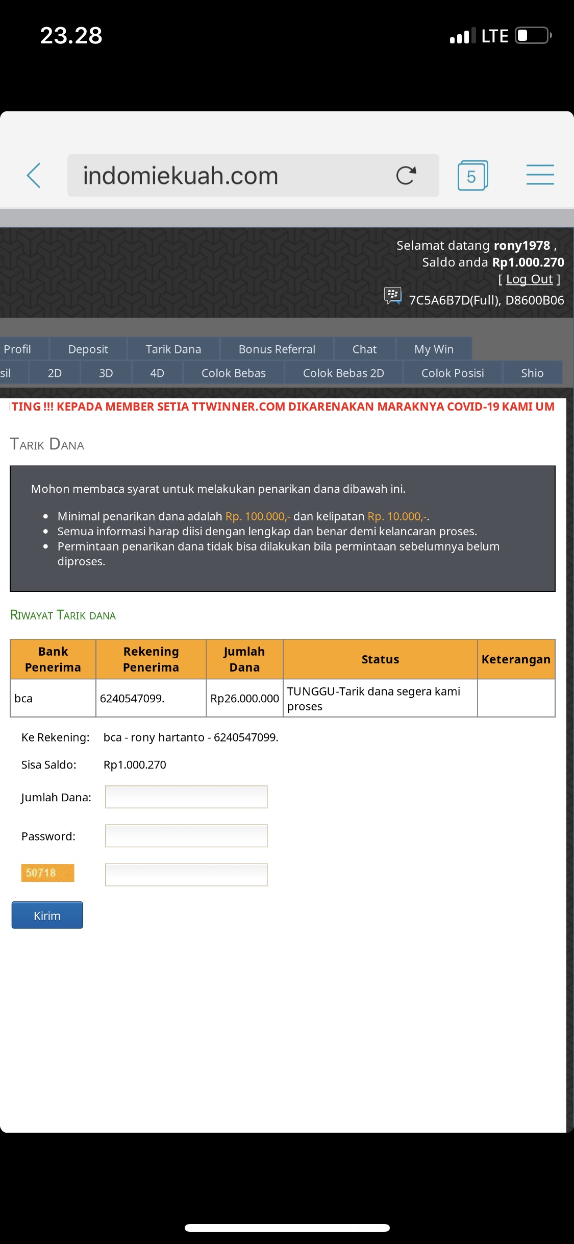 Laporan / Keluhan : wd tidak di proses dan di blokir “solahan hubungi cs”