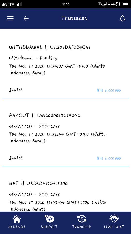 2. maaf sob kami minta buat laporan nya dengan data valid seperti transaksi beting sebelum result dll