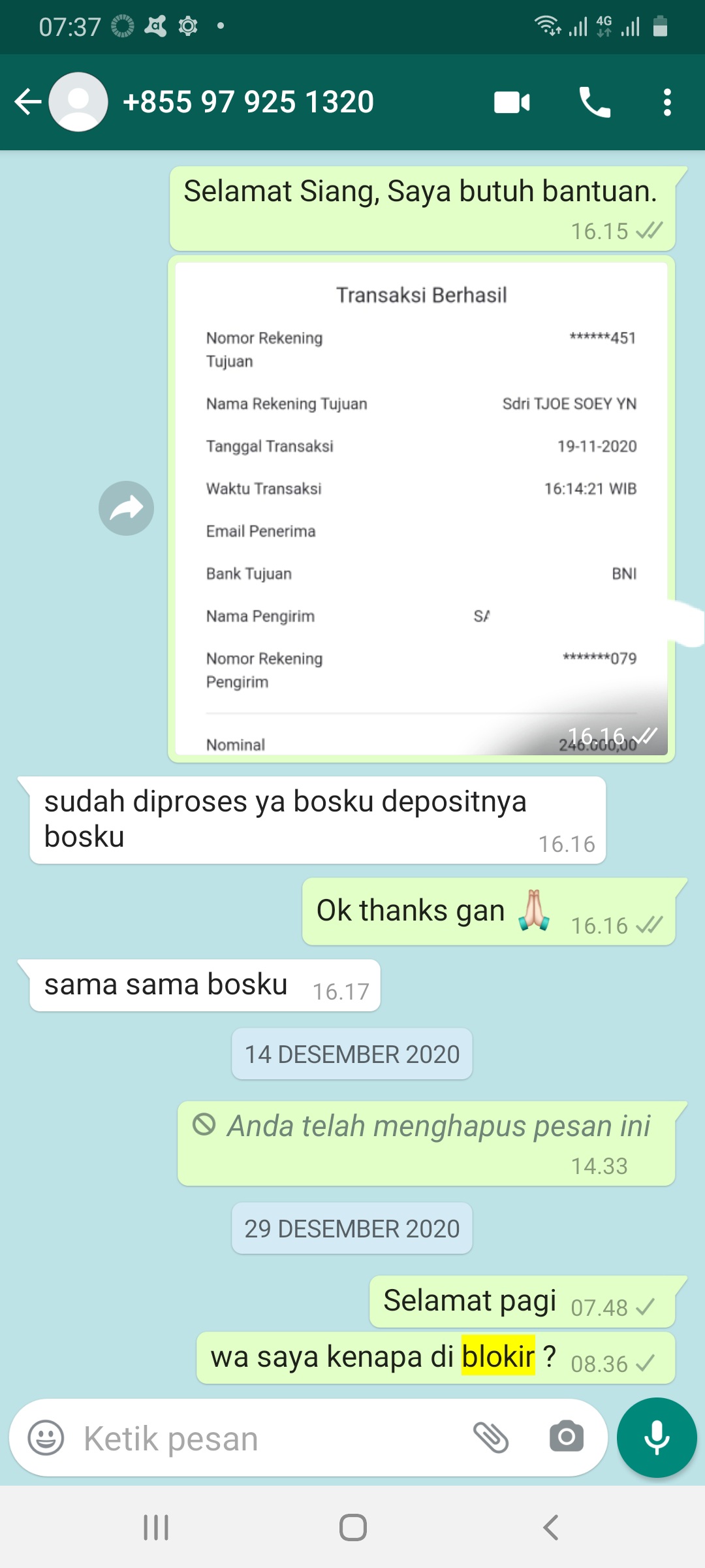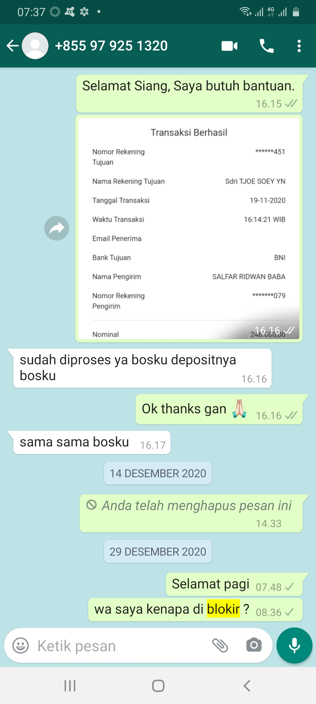 3. Ini gan bukti tf gwa kemereka dan ini bukti wa gwa di block.