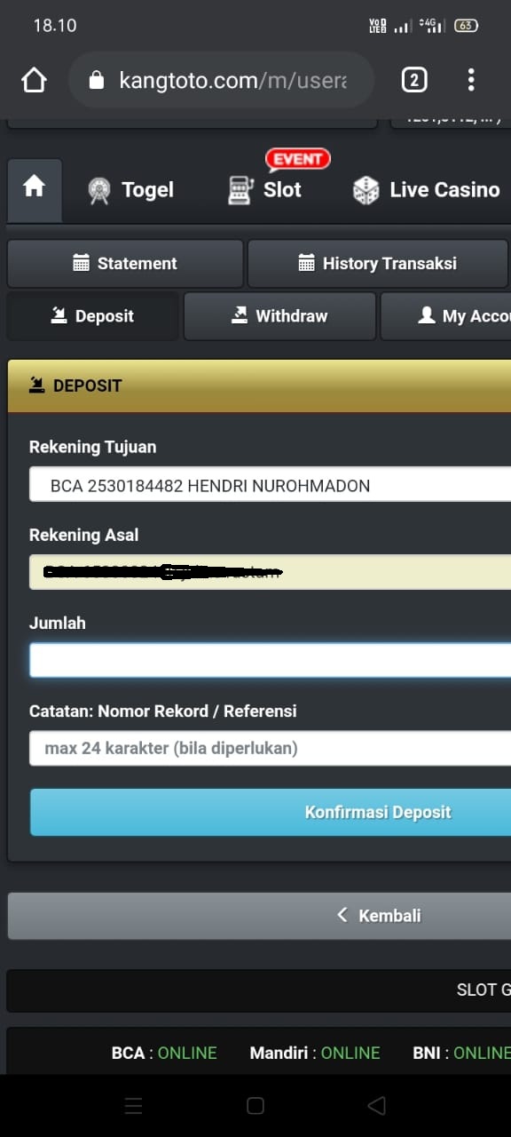 1. Data Bank Anda ( Di Rahasiakan ), Data tersebut Khusus untuk Agen Judi Online Yang bersangkutan sebagai Verifikasi